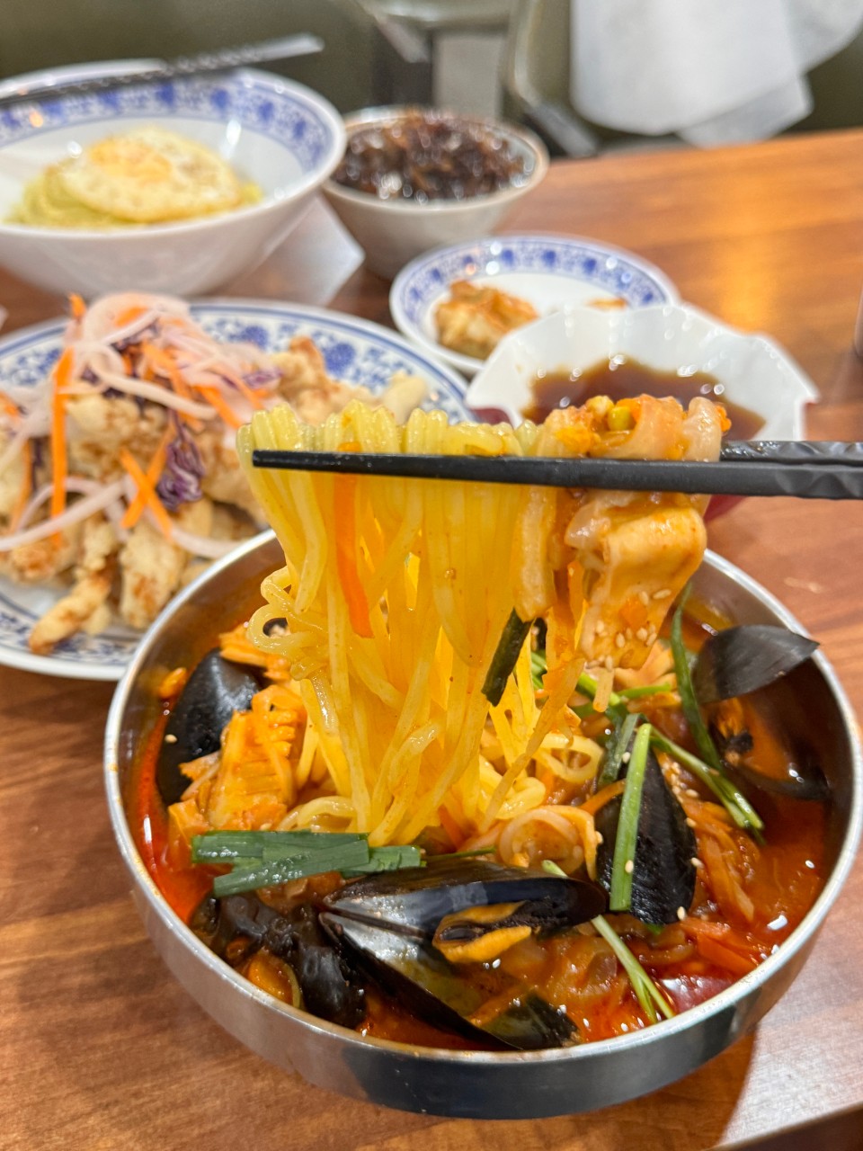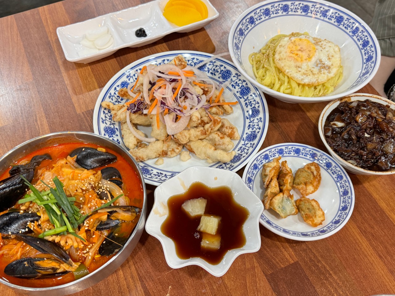 해삐풍풍이첫 방문이었는데 10000% 만족하고 왔어요!! 홀 직원분이 친절하셔서 첫 방문인데도 거부감 없이 편했어요👍(키도 크고 덩치도 좋으셔서 남편이 부럽다함ㅋㅋㅋ) 주방에 계신 사장님과 우연히 눈 마주쳤는데 웃으면서 인사해주시는 것두 넘 따뜻했어요💓 식당에 왔으면 맛이 중요하죠! 음식 받았을 때 비쥬얼이 장난아니라 감탄이 절로 나왔어요. 비쥬얼만큼 맛있었음😋 간짜장 불향 미쳤고 양도 많았고 채소, 소스도 많이 주셨어요! 해물짬뽕에 해물 진짜 대박 많이주시고 역시나 양이 많았어요! 탕수육은 무조건 꼭 먹어야해요 부드럽고 쫄깃하고 다해요👏 가격이 완전 착해서 5시반 전에는 학생 손님들이 많았고 6시 이후로는 소주 한잔하시는 남자 손님이 많았어요. 배달도 많던데 저희는 또 방문해서 먹으려고요!!! 최고였음당💖
