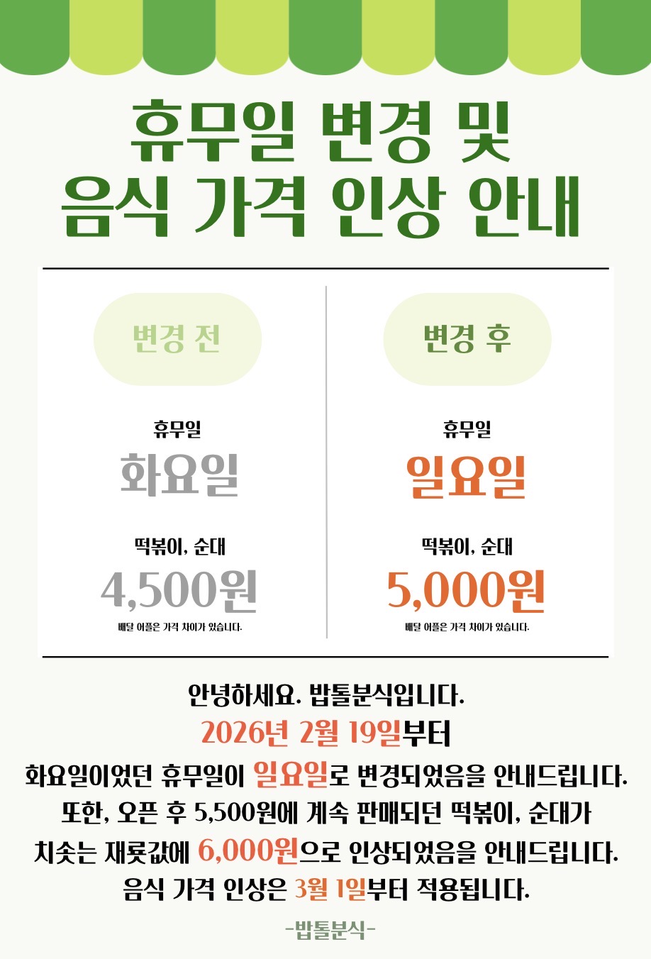 - 떡볶이 5,000원