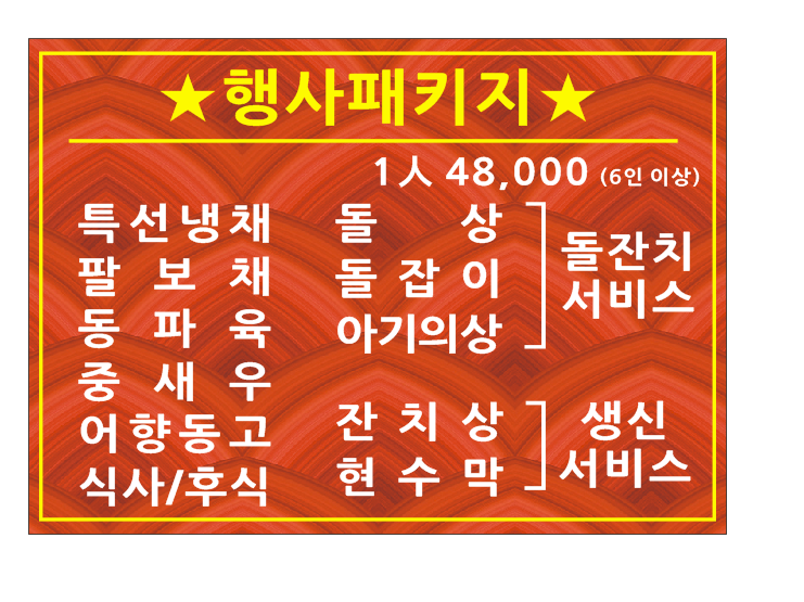 - 행사패키지(6인부터 주문 가능) 48,000원