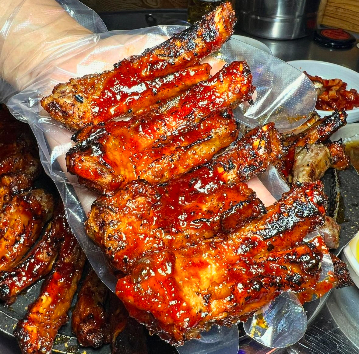 등갈비가 다 구워져서 나와서 바로 먹을 수 있는 점이 정말 편했고 고기도 부드럽고 양념도 매콤달콤해서 맛있었어요!!! 매운맛과 중간맛 모두 먹어봤는데 중간맛은 부담 없는 매콤함이고 매운맛은 매콤한 등갈비 좋아하시는 분들께 추천드리고 싶어요 세트로 주문한 볶음밥이 정말 맛있어서 기억에 남았고 숯불닭갈비도 야들야들 부드럽고 양념이 잘 배어 있어서 세트로 드시는거 강추드려용
