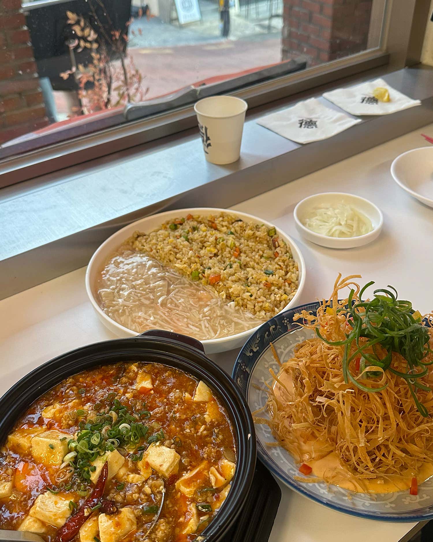 띵뽀22오픈하기 30분 전인데도 대기가 있었고 오픈시간 다가오니까 진짜 갑자기 많이 몰려와서 놀랬음ㅋ.ㅋ,,그만큼 더 기대됐고 들어가자마자 빠르게 가지튀김, 마파두부, 탕수육 이렇게 주문했당,,두번째로 들어가서 그런지 마파두부부터 먼저 나왔고 생각보다 엄청 뜨겁진 않고 미지근하게 퍼서 먹어도 될 온도였다,,두부가 연두부인지 완전 부들부들거리고 조금씩 소고기?가 씹혀서 나름 평타~!! 그다음 탕수육이랑 가지튀김 나왔는데 여긴 가지튀김이 미침,,👍 바삭 쫀득하면서그 소스의 맛이,,뭐라해야하지 그냥 중독성 미쳤음,,,여기 오면 가지튀김 꼭꼭 시켜먹어야 합니덩,,🤤탕수육도 찹쌀탕수육인지 쫀득하면서 맛있었는데 이것도 다른 중국집에서 맛볼 수 있는 무난한 탕수육~ 가지튀김 하나 먹으러 다시 갈 의향있음,,가지튀김 넘 맛있어🫶