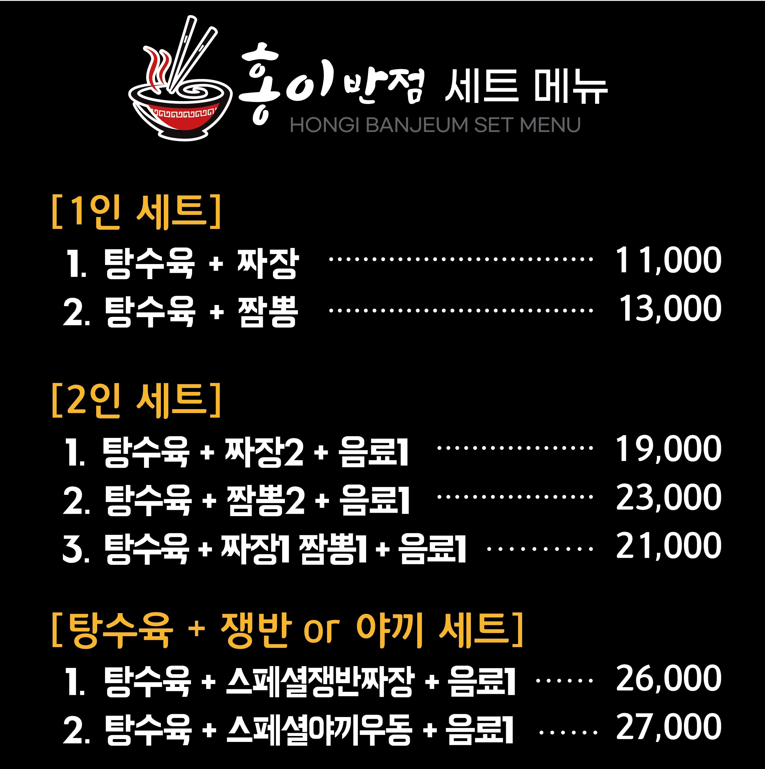 - 쟁반짜장(1인) 7,000원