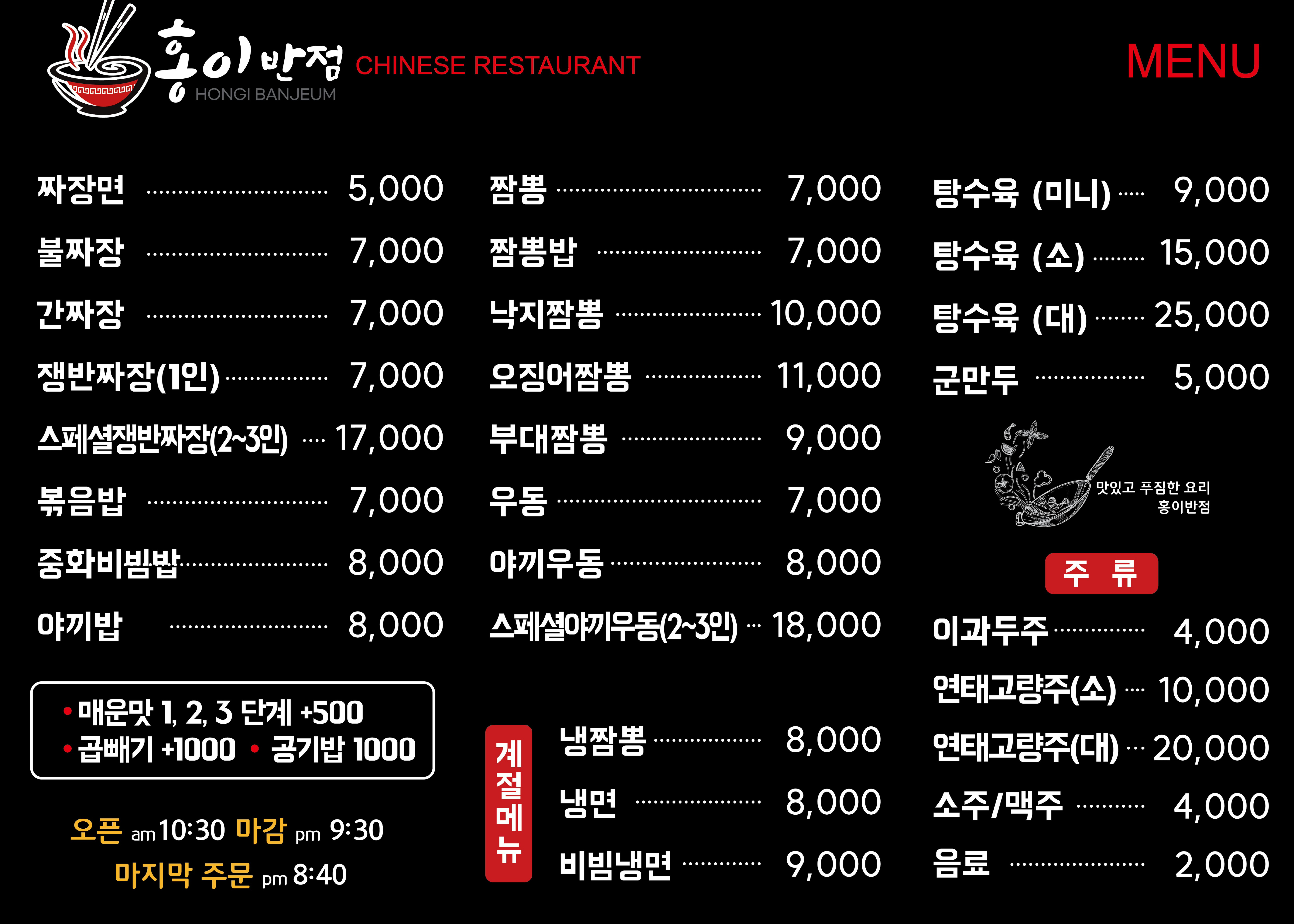 - 짬뽕 7,000원