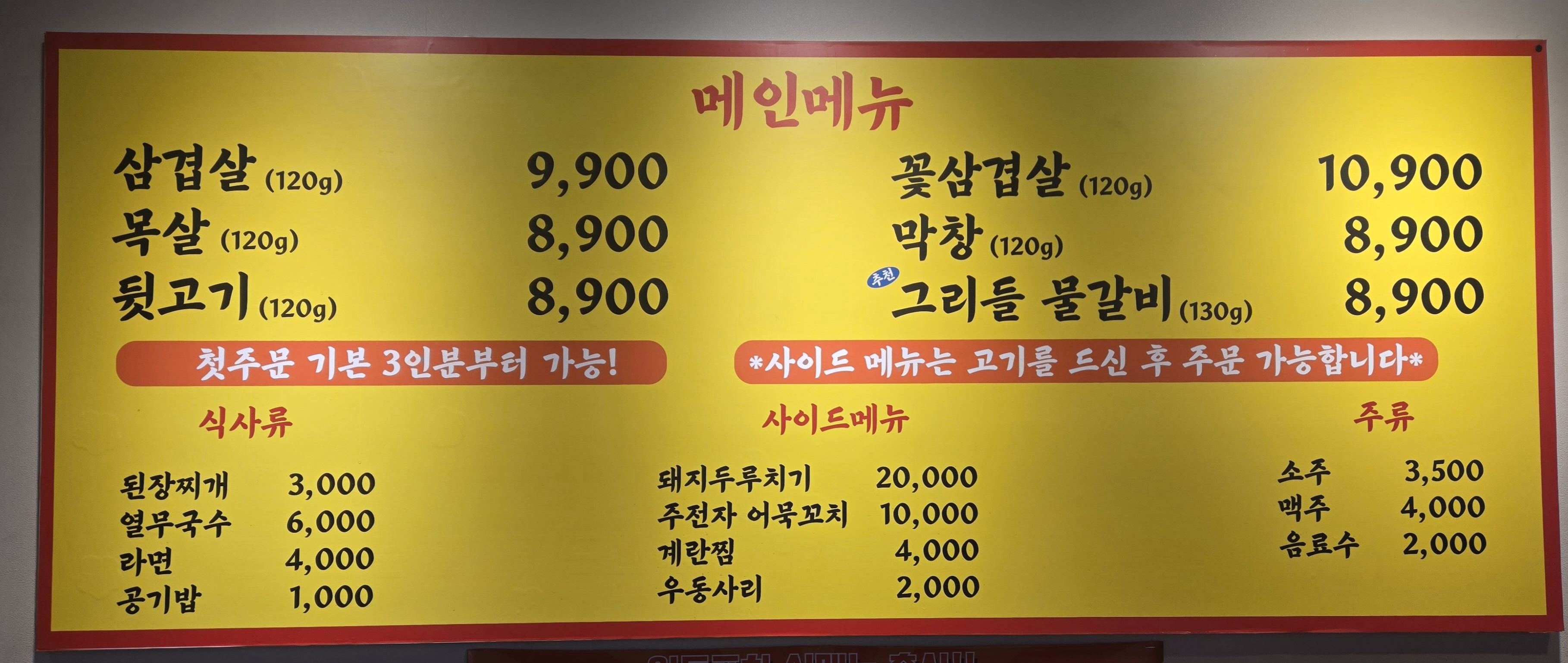 몽삭스크~♡♡ 기대하고 온 보람있네요 사장님들도 친절하시구 곁들임반찬 구성도 훌륭해요! 무엇보다 고기가 너무 너무 맛있었습니다 잘먹었습니다♡ 동네있다고 깅가민가하지마세요 장난아닙니다!!!