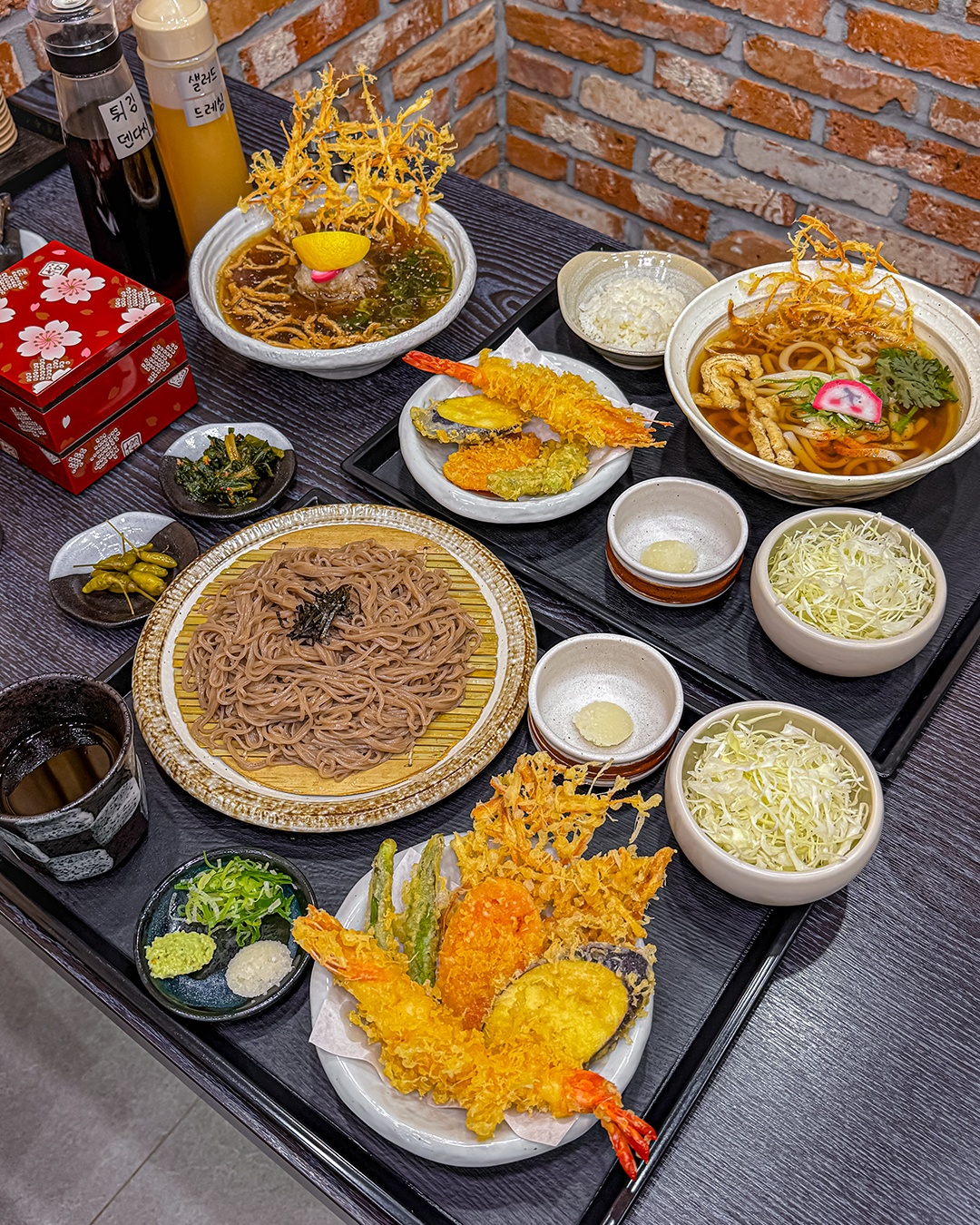 냠글자루소바, 모둠카츠정식, 카라이우동 먹고 왔어요 😊 세트 메뉴 구성도 정말 좋아요! 샐러드, 튀김까지 알차게 나오고, 가지튀김도 맛있었어요. 특히 새우머리까지 바삭하게 튀겨져서 고소함이 최고👍👍 자루소바는 메밀면이 탄력 있고 탱글해서 식감이 좋고, 쯔유 소스도 짜지 않고 맛있었어요 카라이우동은 맵싹해서 호로록 먹기 좋으요 모둠카츠 구성도 생선카츠, 튀김, 닭안심이 나오는데, 닭안심은 처음 먹어봤는데 정말 부드럽고 야들야들해서 굿 생선카츠는 타르타르소스에 찍어 먹으니 고소하고, 소바랑도 잘 어울렸습니다 👍 혼밥하기에도 좋고, 점심시간에는 항상 손님이 많을 정도로 인기 있는 곳이에요!
