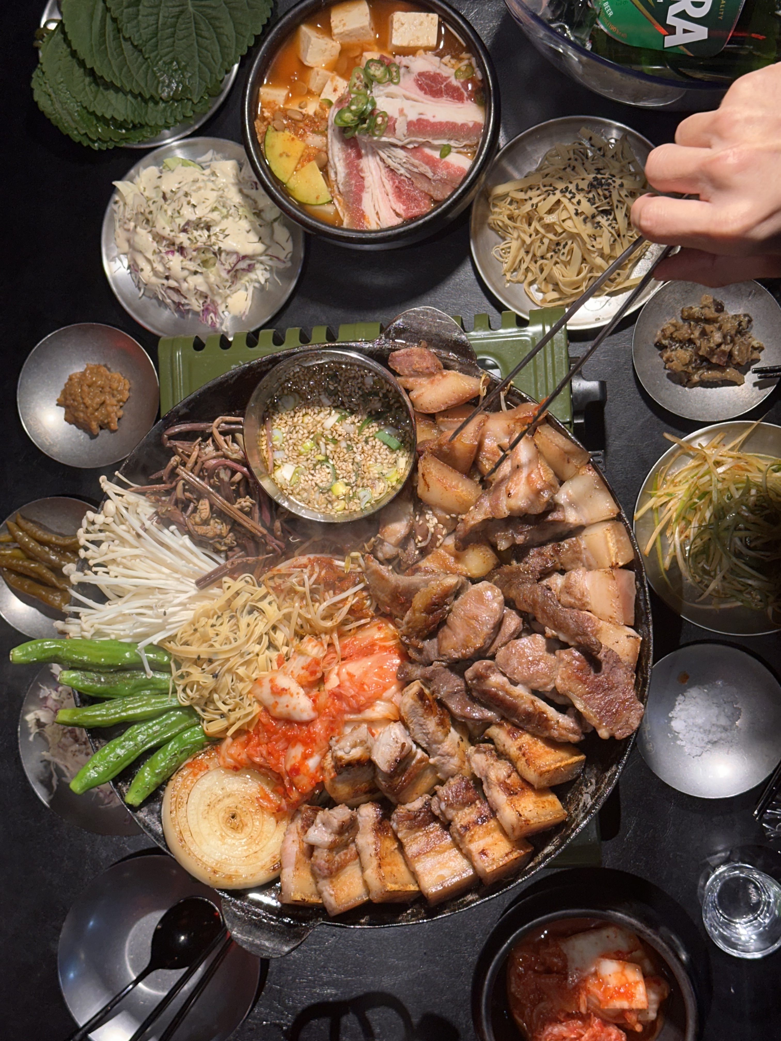 cheery여기는 사실 알려지면 속상한 곳인데.....ㅋㅋ 이미 많이 유명해지기도 했고, 진짜 맛있어서 소개해요! 무엇보다 센스 있고 타이밍 좋은 서비스가 인상적이라 잘되셨으면 좋겠고요 ㅎㅎㅎ 이제 곧 이사라서 아쉬워질 까치산 입니다. 까치산역에서 다이소로 나와 왼쪽으로 꺾어서 조금 걸으면 저녁에는 높은 확률로 바깥에 사람들이 줄 서 있는 곳이에요. 안에 이렇게 커다란 샹들리에가 있어 눈에 확 띕니다. 자리는 의자에 앉는 구역과 신발 벗고 앉는 곳이 있어요. 저녁 8시쯤 가니까 자리가 있어서 바로 앉았어요. (보통은 웨이팅이 있어요) 밑반찬으로 여러가지 입맛 돋구는 음식들이 나오고, 들기름 순두부가 진짜 맛있어요!! 하이볼도 한잔 하면서 고기를 기다리고 있어요 >_< 꼬들살이랑 뽈살 시켰는데, 양념이 너무 맛있어요! 살짝 매울때는 마요네즈 소스 찍어 먹으면 됩니다 ㅎㅎ 직원분이 처음에 좀 구워주시고 불 끄고 먹어도 따뜻해요. 밑반찬이나 야채는 떨어지기 전에 직원분이 오셔서 물어봐주세요. 타이밍이 너무 완벽한 서비스에 칭찬하면서 먹었습니다. 그리고 빠질 수 없는 볶음밥!!!!!! 요것도 너무너무 맛있으니 꼭 시켜드세용 맛도 있고, 쉴새없이 움직이면서 손님들 체크하는 직원분들 덕분에 너무 맛있게 먹고 왔어요. 계산할 때 어떻게 이렇게 서비스가 좋으냐고 묻기도 했답니다 ㅎㅎ 까치산 올 일 있으시면 꼭 고려해보세요 :-)