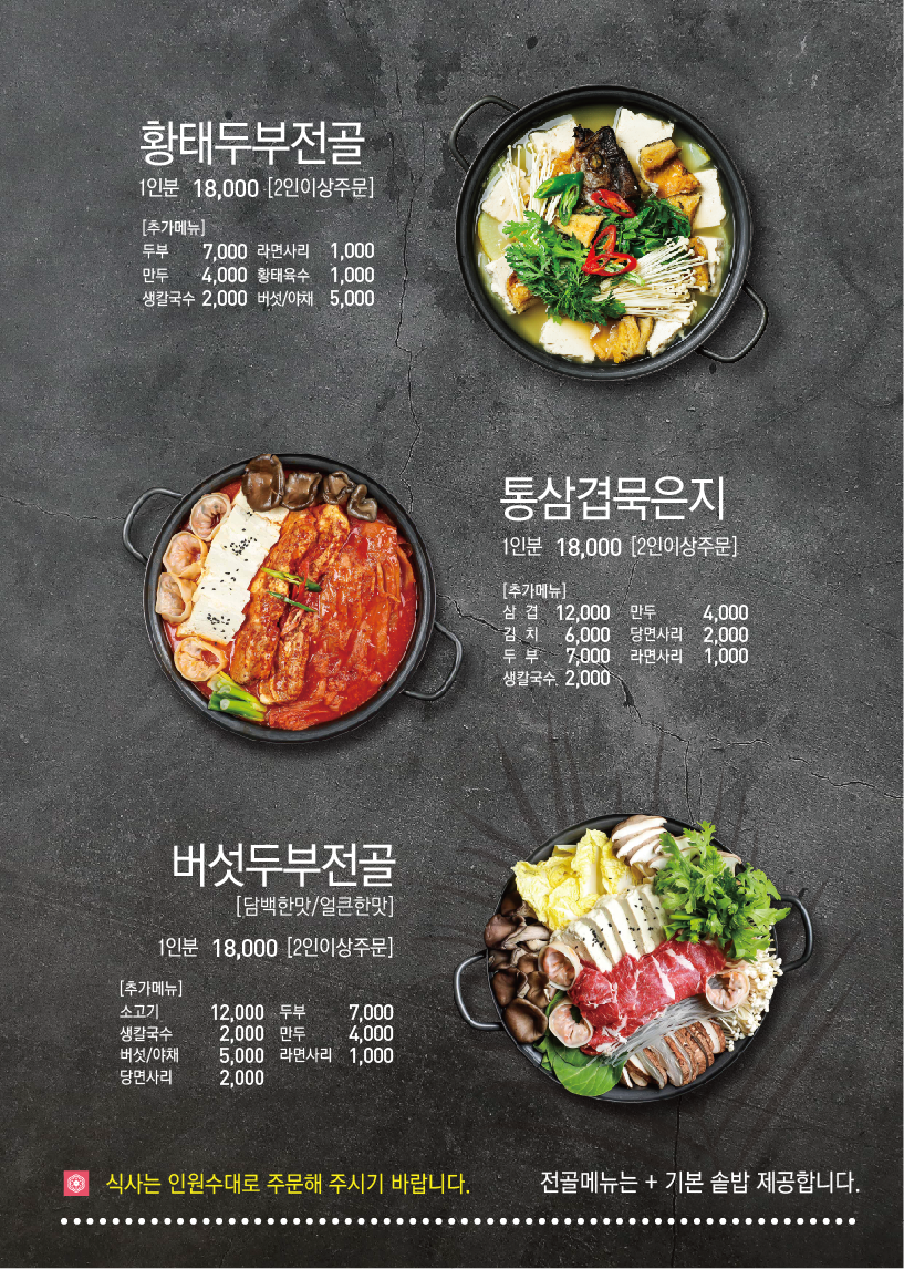 - 황태두부전골 18,000원
