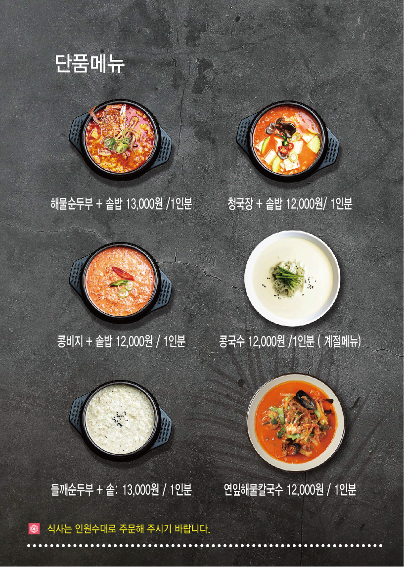 - 해물순두부+솥밥 13,000원