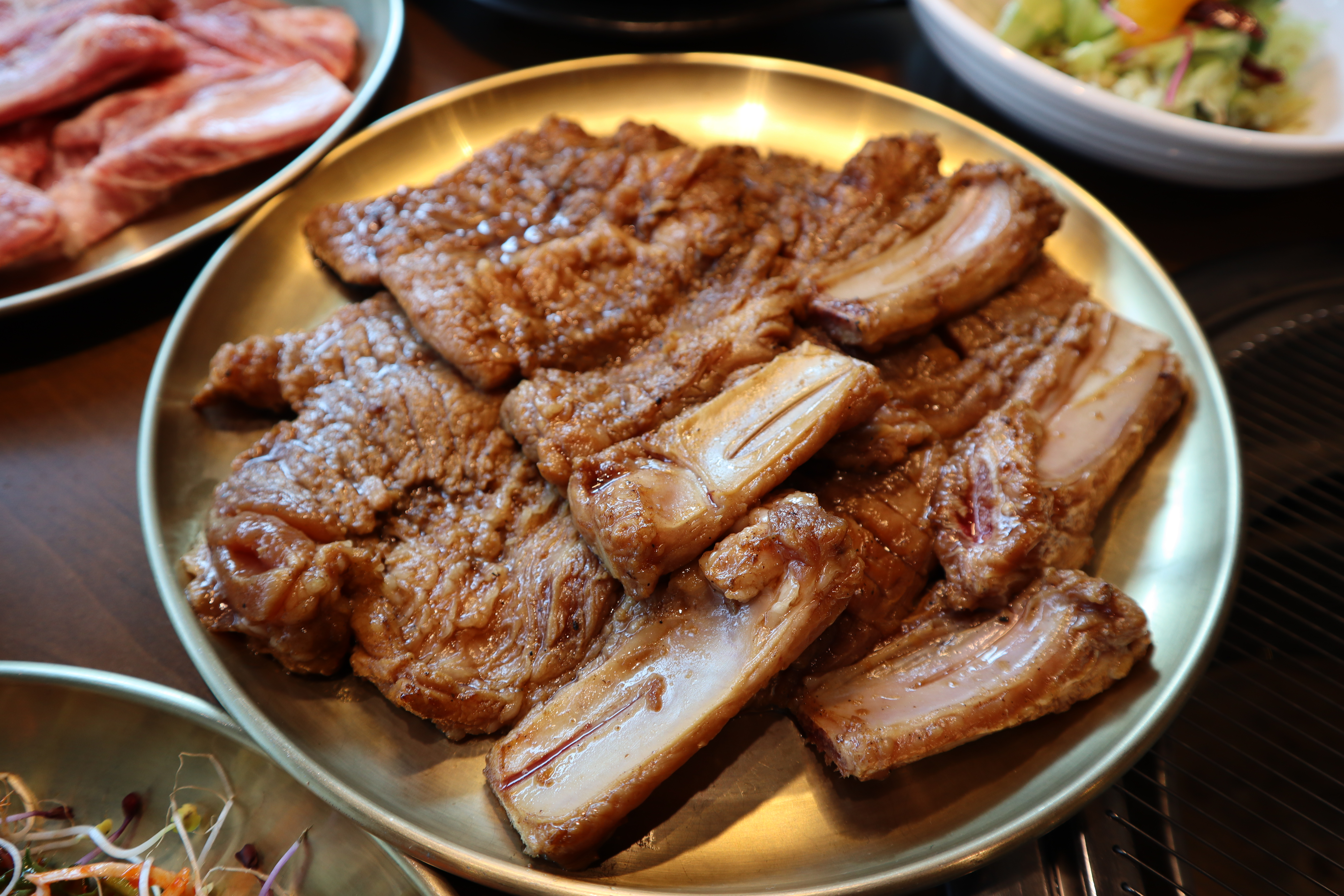 땡깡이쥬갈비집에서 생등갈비구이를 맛보았습니다. 고기의 질이 훌륭했고, 뜯는 맛 또한 일품이었습니다. 소스로는 간장과 소금이 제공되었습니다. 다양하게 차려진 밑반찬들도 모두 맛있었습니다. 직원분들도 친절하셔서 전반적으로 식사하기에 매우 좋은 곳이라고 생각합니다.