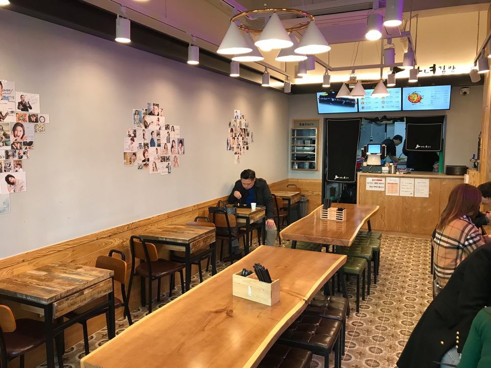 Moomin8혼밥하기 딱 좋아요. 사장님 정말 친절하시고 유쾌하셔서 기분도 좋아졌어요. 김밥도 바로 나옵니다. 대표메뉴 마녀김밥은 안에 바삭한 튀김이 들어있어요. 바작하게 씹히는 질감이 재밌고 맛있습니다. 크기도 굉장히 커서 반만 먹어도 굉장히 배불러요. 가격도 굉장히 저렴해서 가성비있게 너무 좋네요. 절반 정도 먹다보면 약간 느끼해서 김치랑 먹으면 딱 좋구요. 장국, 김치 등 반찬이나 물은 셀프인데 김밥 나오는 곳 바로 옆에 있어서 동선도 깔끔하니 좋습니다. 종종 들려서 간단히 식사하려구요. 매장에는 연예인 싸인이 잔뜩 있어서 재밌습니다. 구석구석 청결하구요. 기본적으로 관리 잘 된 좋은 혼밥집이라는 인상을 받았습니다. 식사하면서 보니까 급히 와서 혼밥하고 가시는 분들 많으시더라구요.