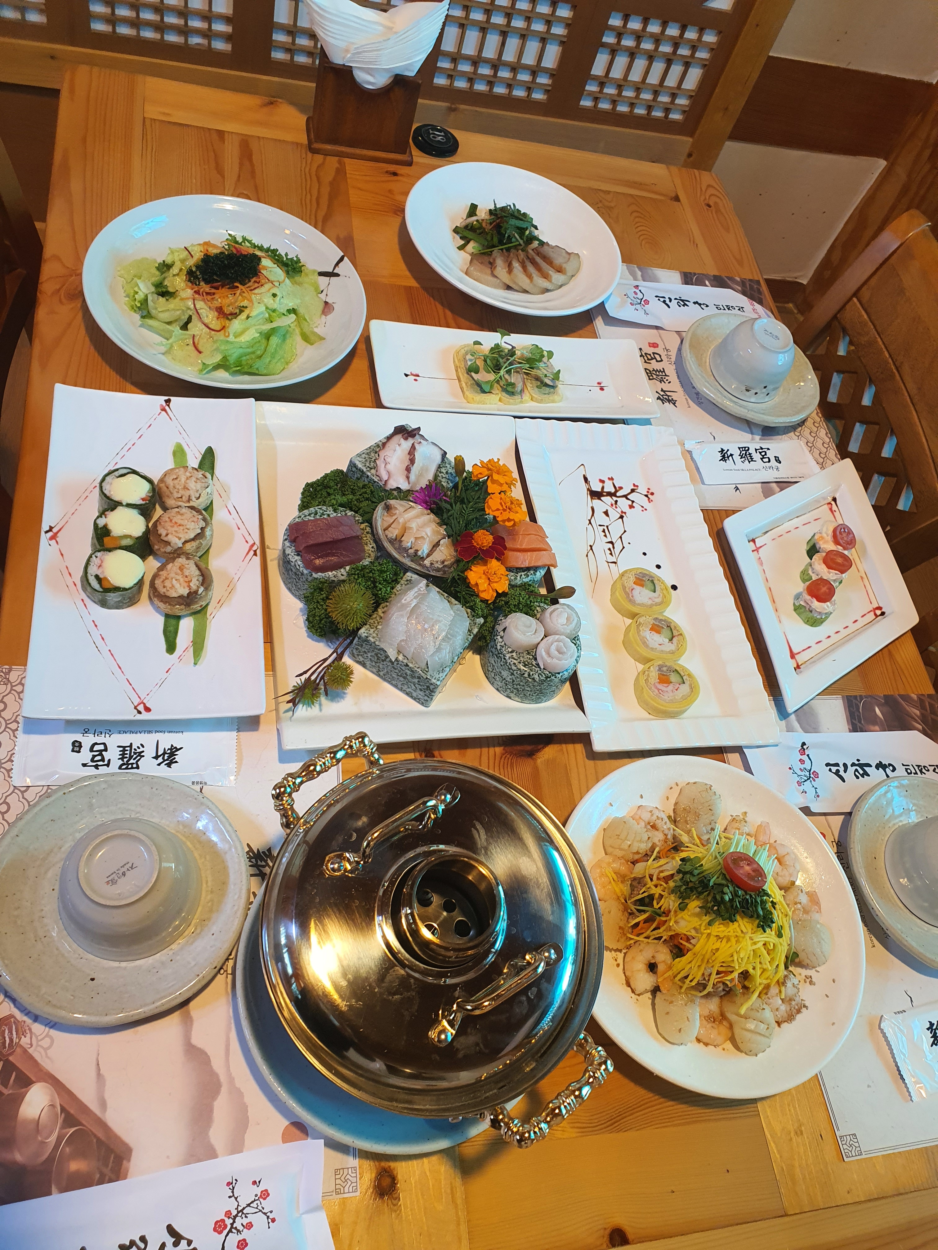 상견례 자리로 예약한 신라궁입니다. 외관부터 고풍스런 분위기를 보이며, 식사 시간동안 나오는 모든 음식들이 다 부모님들의 마음을 사로잡았습니다❤️ 상견례 장소로 많은 고민을 했으나 정말 딱 좋은 곳으로 방문한거 같아 너무 만족했어요❣️ 갈비찜부터 소불고기, 잡채에 무침회, 작게나마 모둠회에 마지막으론 돌솥밥까지 너무너무 만족했습니다👍❤️ 특히 직원분들도 다 너무 친절하셔서 부담없이 식사하고 왔습니다 ㅎㅎ 부모님생신때도 한번 더 방문하고 싶습니다 ㅎㅎ
