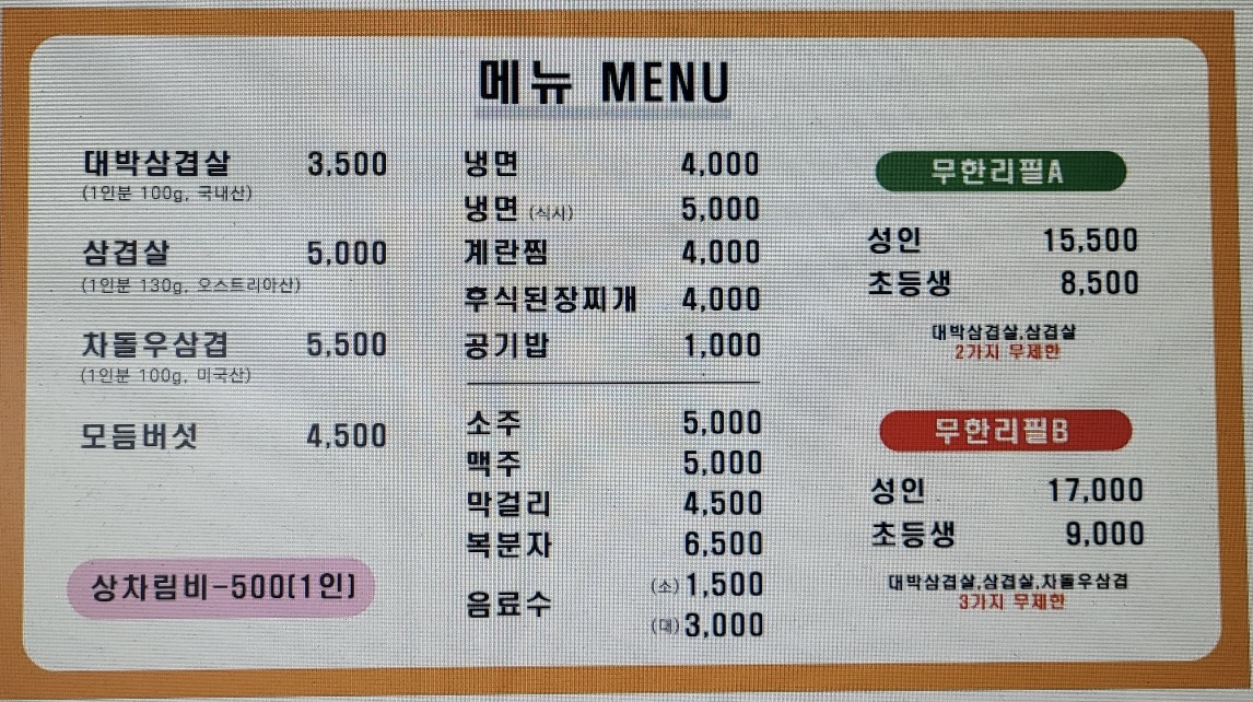 - 무한리필B(성인) 17,000원