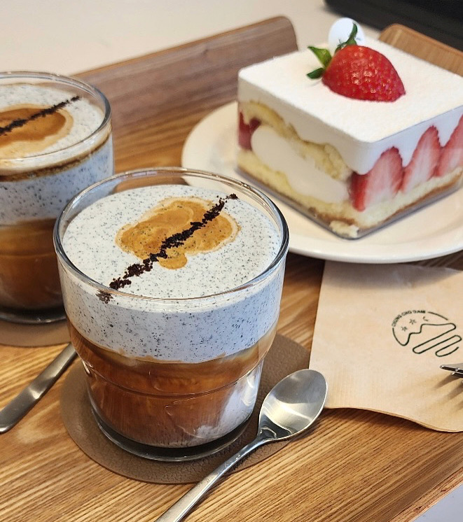 간헐적한끼오랜만에 친구들과 여유로운 시간을 보내려고 <청초담>에 방문했어요 😊 <흑임자라떼>, <아인슈페너>, <아메리카노>, <아이스티 피치>에 곁들임으로 <소금빵>, <딸기 티라미수> 주문했습니다 ☕️ 베이커리를 함께 운영하는 곳이라 그런지 음료 위에 올라간 크림이 몽글몽글하고 달콤하면서도 고소한 풍미가 진하게 느껴졌어요. 특히 갓 데워 따끈한 소금빵과 겨울 한정으로 나온 부드러운 크림과 상큼한 딸기 향이 어우러진 딸기 티라미수는, 이 맛을 모르는 사람이 없게 널리 알리고 싶을 정도로 정말 맛있더라고요 🍞🍓 본래는 속초 주민들이 주로 찾던 공간이었는데 깔끔하고 밝은 인테리어에 꾸준한 맛까지 더해져 요즘은 관광객들도 부쩍 찾는 곳이 된 것 같습니다. 속초에서 크림 잘 쓰기로 손꼽히는 1티어 맛집이니 꼭 방문하시길👍✨