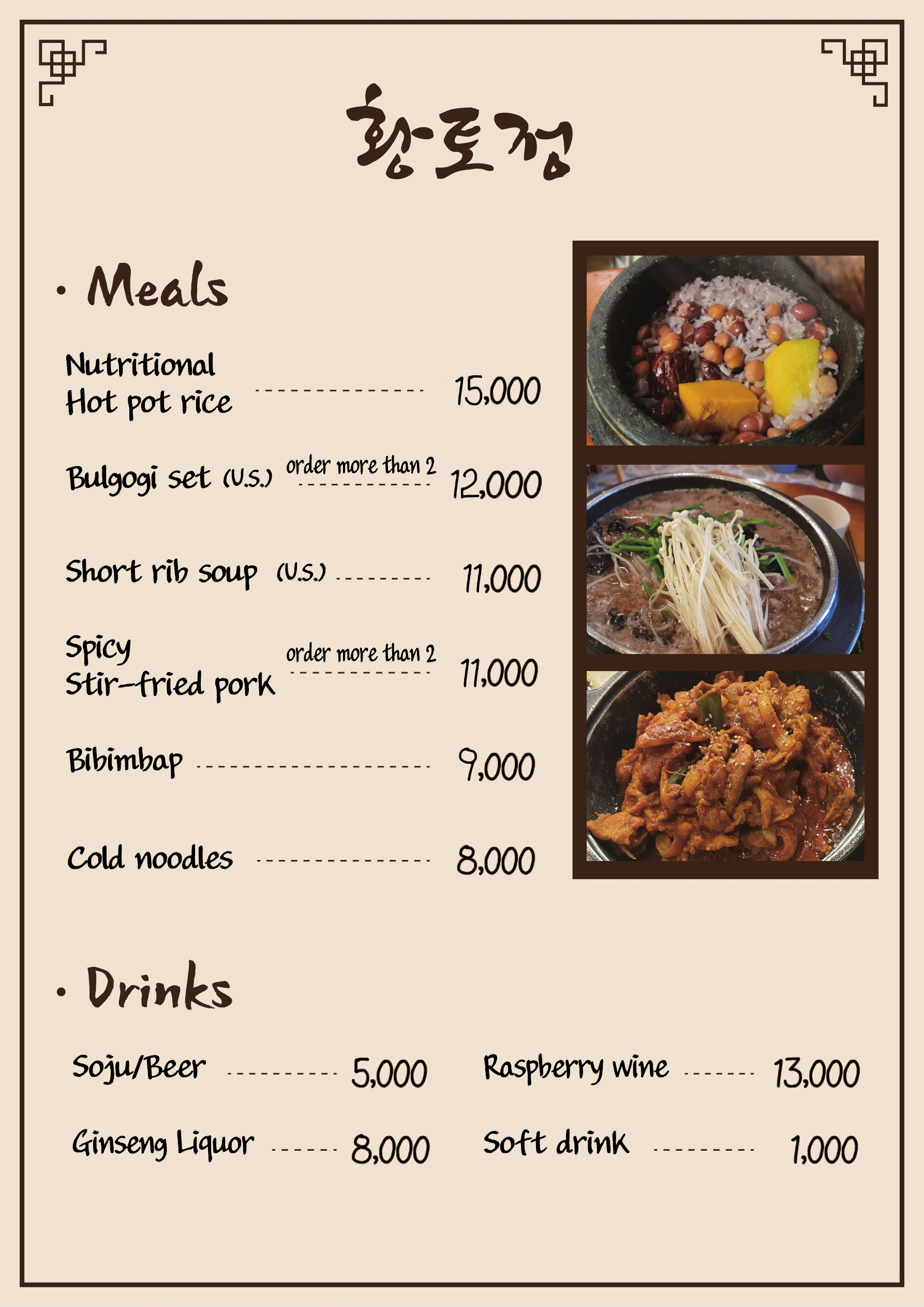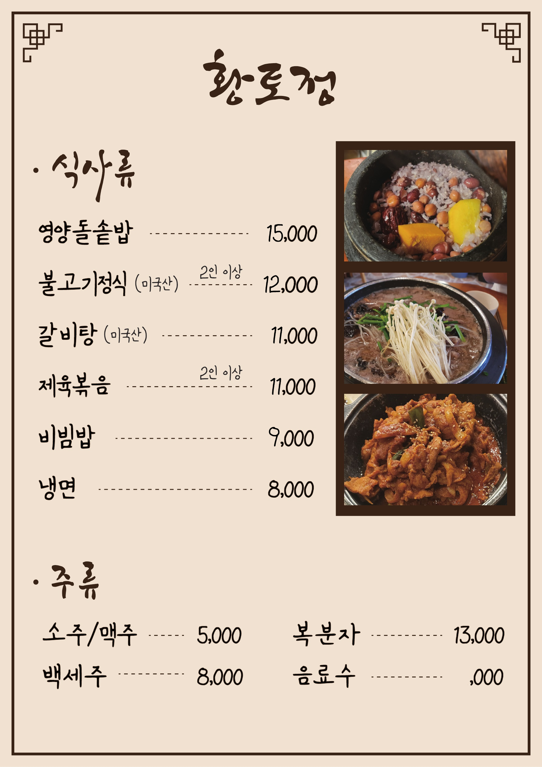 - 불고기정식 12,000원