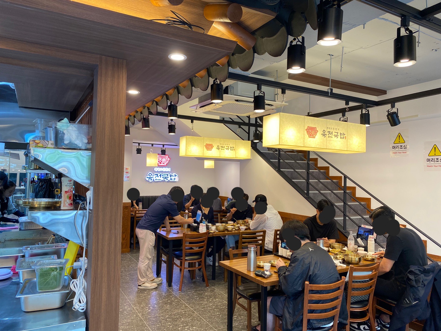 Rrms소고기 국밥 약간 얼큰 하면서도 정말 속이 풀리는 맛이 네요 외국가면 그리울 딱 그느낌..!! 신라면 보다 많이 맵지 않고 건더기도 풍부해서 맛있게 먹었어요.육전이랑 완자는 따뜻하게 나와서 같이 먹으니 더 든든하고 양도 아주 많아요. 비빔 막국수는 고기랑 같이 먹으니 느끼함을 잡아 주네요. 2층이는 단체 모임 하는 사람들도 많고 혼밥 하기에도 좋아요. 젊고 친절한 직원들이 안내도 잘해주고 청결한 매장이라.부모님 모시고 맛있게 먹었습니다.