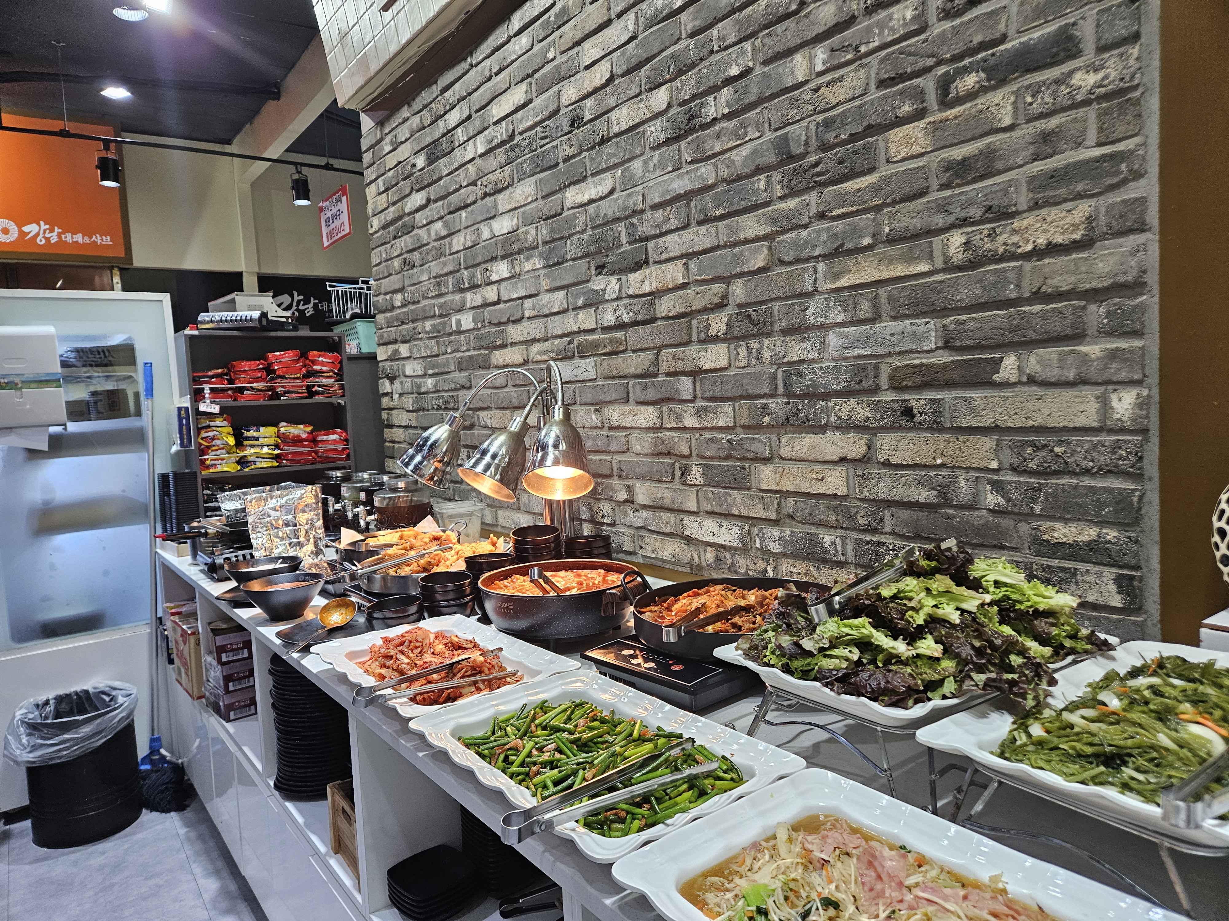 럭셜김여사동탄 남광장고기집 강남대패무한리필 화성 동탄중심상가1길 8 워터밸리 1층 매일 11:00~23:30 금요일 토요일은 새벽 2시까지 영업 동탄 남광장고기집 으로 다양한 고기와 사이드메뉴를 무한으로 즐길 수 있는 가성비 좋은 식당이다. 동탄 남광장에 위치한 강남대패무한 리필은 신선한 고기와 다양한 사이드 메뉴를 합리적인 가격에 제공한다. 럭셜김여사눈 무한리필 고기 좋아하는 우리집 먹보들이랑 방문을 하였다. 구이세트 19,900 원 모둠구이세트 21,900 원 모듬구이_샤브세트 24,900 원 무한으로 즐길 수 있는 고기는 대패삼겹살 /생삼겹살/ 양념대패/ 닭갈비/ 생목살/돼지껍데기/항정상/우삼겹 그 외 샤브샤브 3종치킨 신선야채 즉석라면과 밥 국이 제공된다. 남광장고기집 강남대패무한리필은 무한으로 즐기는 고기메뉴와 신메뉴 단일메뉴도 가능하다. 평일 점심은 한식뷔페로 운영하고 있어 점심 맛집으로 인기 많은 곳이다. 점심 한식뷔페 강추!!^^ 런치 한식뷔페 1인 9,000 원 다양한 반찬이 먹고 싶을 때 푸짐하게 먹고 싶을 때 점심 메뉴로 한식뷔페 오전 11시부터 14:30 분까지 운영하고 있다. 주말 휴일은 이용하지 않으니 확인 후 방문해야 한다. 동탄 남광장 점심 맛집으로 추천 남광장고기집 강남대패무한리필 구이세트 모둠구이세트 모듬구이+샤부세트 세부 메뉴이다. 럭셜김여사는 모둠구이세트로 주문하였다!! 샤브도 좋아하지만 오늘은 고기에만 집중하기로 했다. 무한리필 이용 시간은 정해져 있다. 사실 2시간이면 충분하다. 고기는 처음에는 대패삼겹살은 먼저 가져다준다. 그 뒤엔 자유롭게 셀프바나 고기코너에서 직접 가져다 자유롭게 먹으면 된다. 전부 포장이 되어 있어 깔끔하고 위생적이다. 앞접시와 야채 반찬 등도 자유롭게 가져갈 수 있는 곳이다. 남광장고기집 강남대패무한리필 의 홀 내부이다. 내부도 가족모임 단체 회식하기에 무난하고 미리 예약을 하면 좋을 듯하다. 누구나 좋아하는 즉석라면 코너도 무척 인기가 많다. 라면도 종류별로 다양하게 준비되어 있어 식사 후에 후식으로 이용하면 좋다. 즉석라면 코너는 강남대패무한리필의 시그니처다~ 셀프바에는 3종치킨 과 각종 사이드 음식들이 준비되어 있다.럭셜김여사는 고기에만 집중하기 위해 사이드메뉴는 가볍게 맛만 봤다. 고기를 먹기 위한 다양한 야채코너가 있어 좋아하는 야채를 곁들여 먹으면 된다. 무한리필은 아무래도 음식 욕심이 있을 수 있어 먹을 만큼 조금씩 가져다 먹고 모자라면 다시 가져가는 게 음식을 남기지 않고 먹을 수 있기에 좋다....