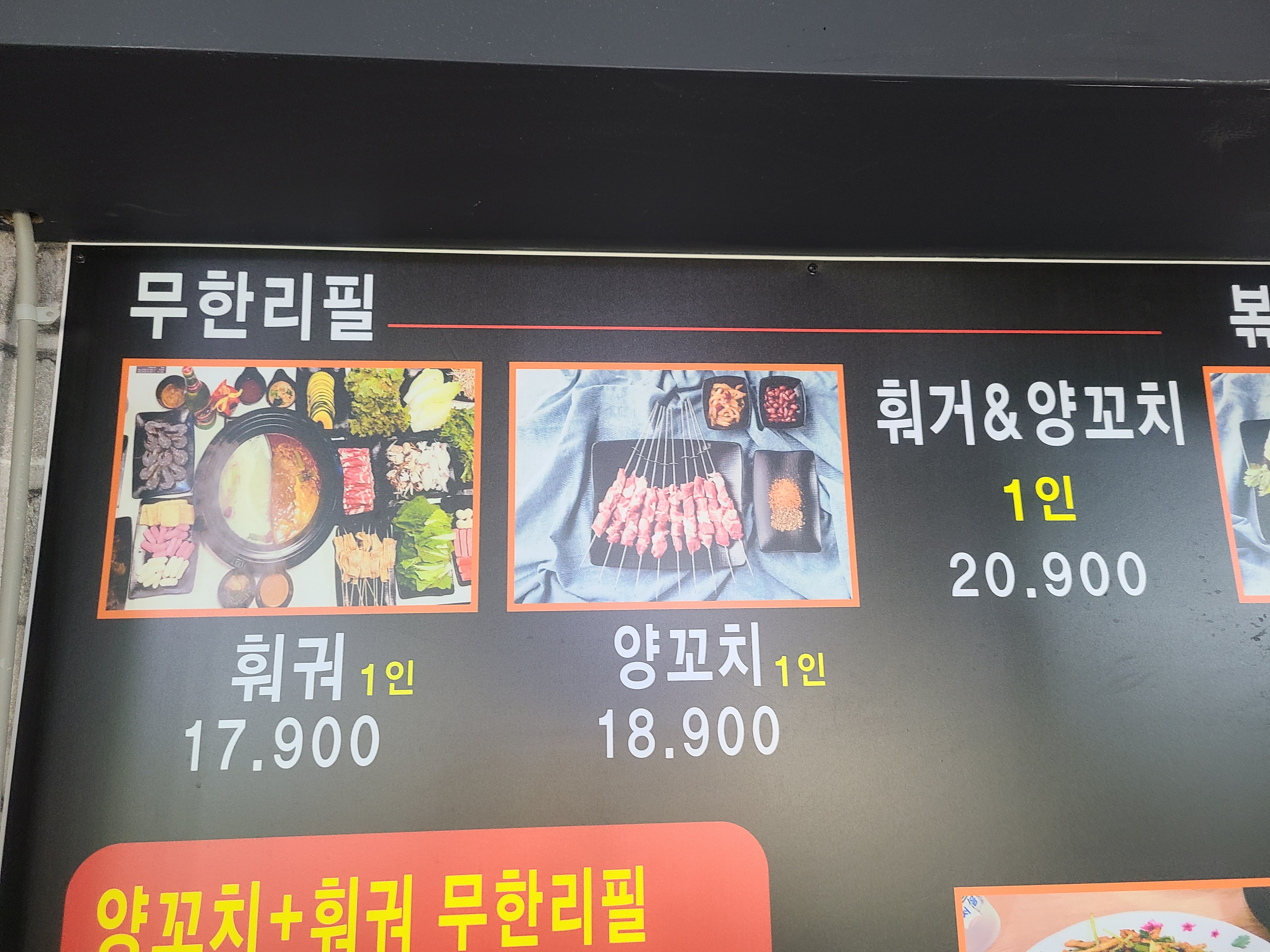 - 양꼬치 무한리필1인 21,900원