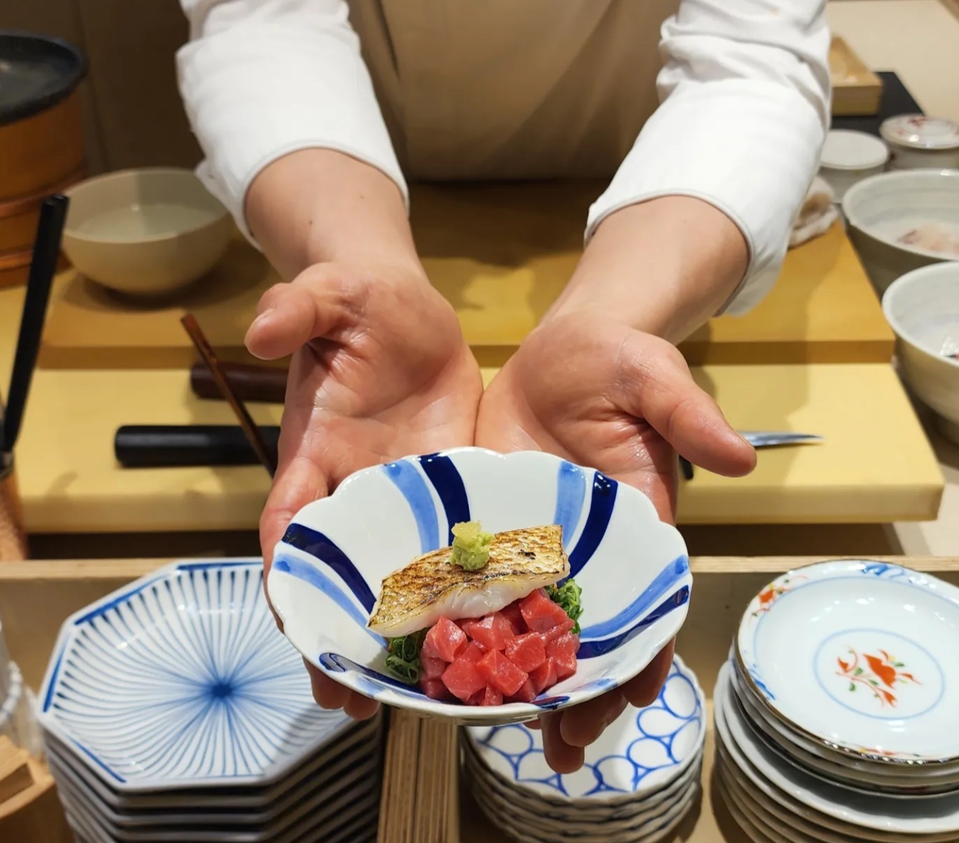 baby찡찡이오마카세 코스 정말 좋습니다. 이 가격에 이런 구성이면 최고의 가성비입니다. 스시나 사시미의 퀄리티도 상당하고 너무 맛있고 무엇보다 코스를 구성하고 있는 요리들의 종류가 정말 다양하고 하나하나 다 퀄리티가 좋고 너무 맛있습니다. 평범하고 흔한 맛이 아닌 특별함이 있습니다. 타르트의 허브크림소스나 찐전복의 전복내장크림, 세비체의 산듯한 소스와 루꼴라의 조합, 수제전복어묵, 바삭한 김말이와 우니의 조합 등 처음 먹어보는 소스와 신선한 재료의 조합들이 다음코스를 기대하게 만드는 최고의 오마카세 였습니다. 결혼기념일이라 방문했는데 너무 만족스러운 식사로 좋은 시간을 보냈습니다!