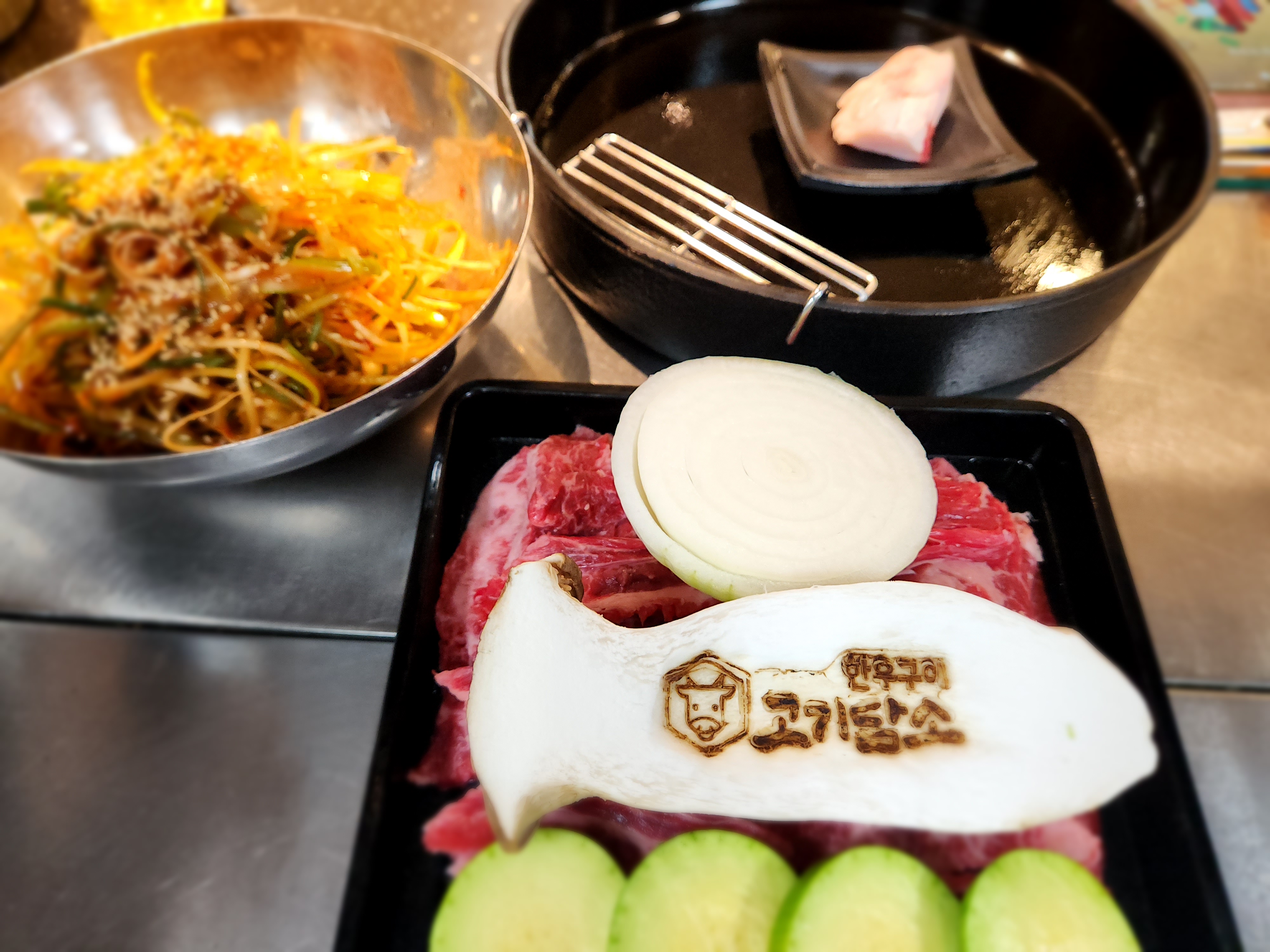 샤샤쀼모듬 한우 500g 먹었는데 고기 질도 좋고, 양도 많아서 여자 2명이면 300g만 해도 충분할것 같아요~ 돌판에다가 구우니 소고기 굽기도 쉽고 더 맛난것 같아요🍀 된장찌개도 고기 듬뿍 들어가서 넘나 맛있으니 꼭 드세용👍