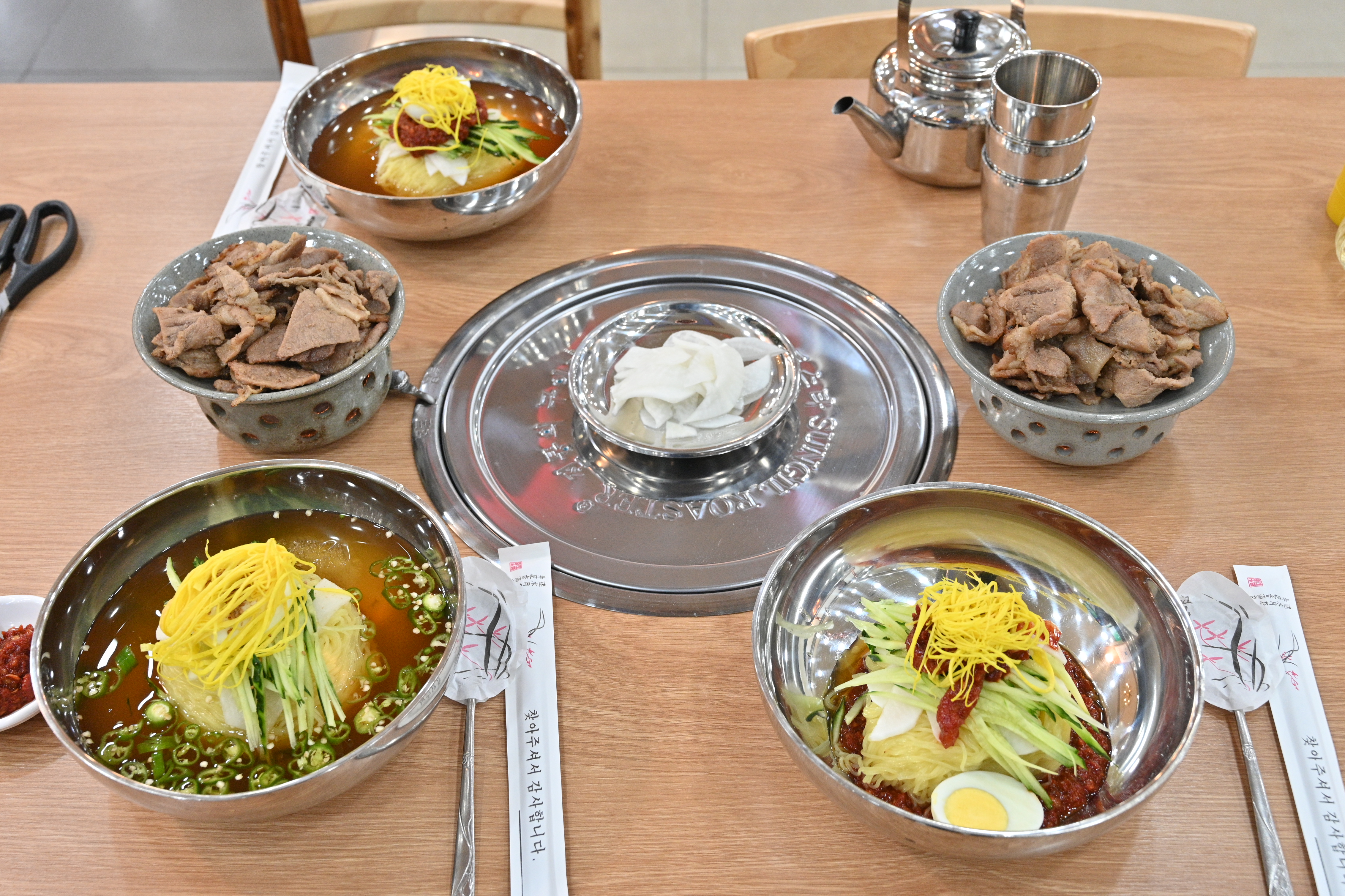 밀면집이지만, 계절메뉴로 갈비찜, 된장국 세트가 있네요. 갈비고기를 잘라 콩나물 김가루를 넣어 비벼먹는 메뉴네요. 밀면+석쇠불고기 세트가 먹어 보고 싶네요. 잘먹고 갑니다.