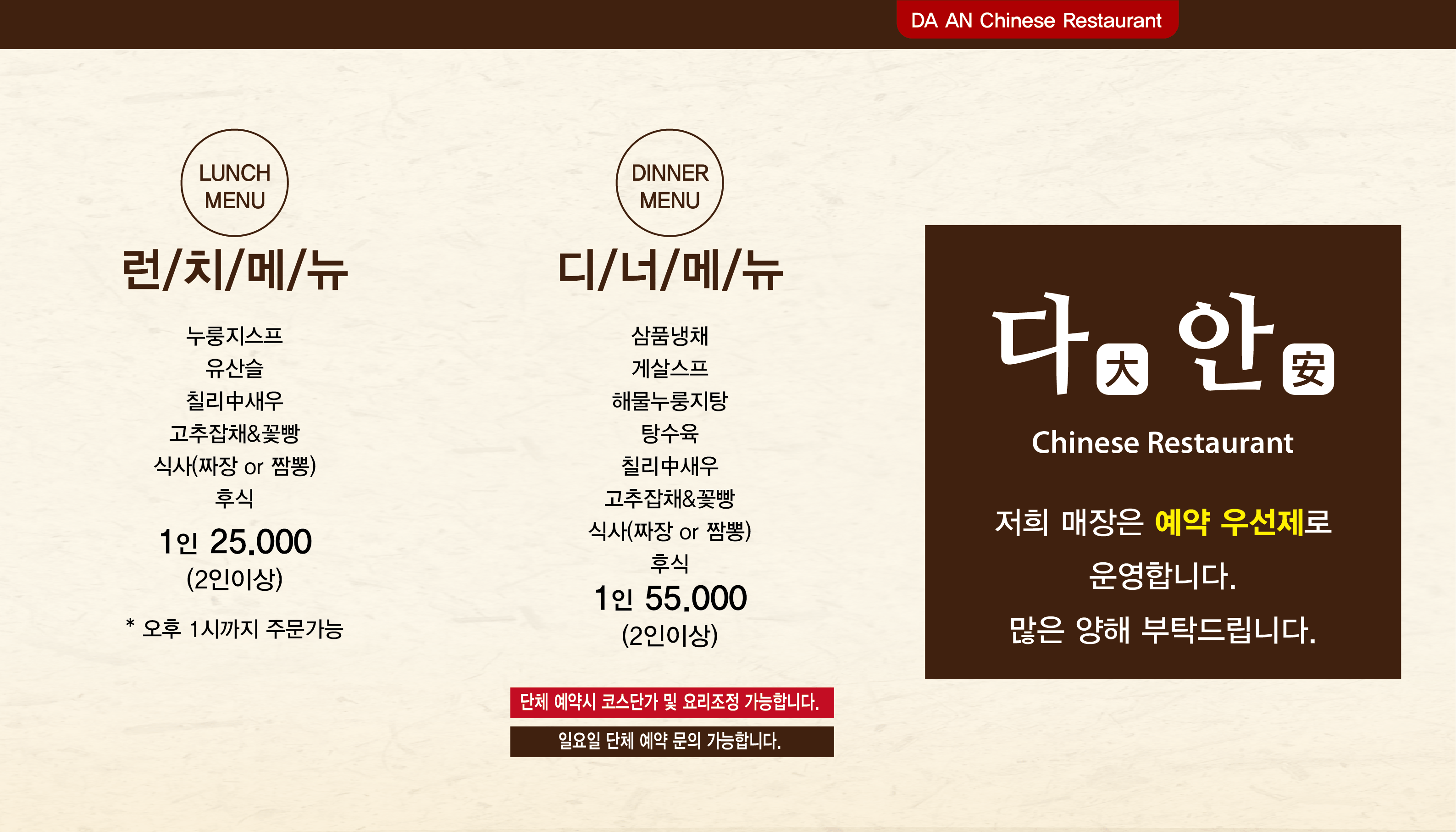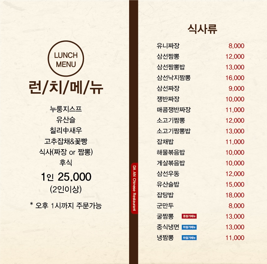 - 런치메뉴 25,000원