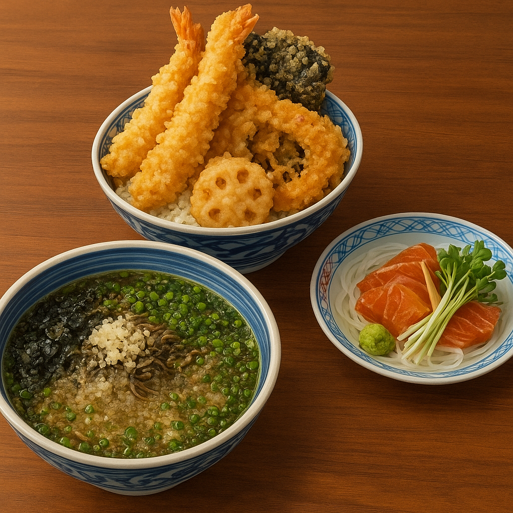 - 눈꽃 새우 텐동 + 소바 또는 우동 16,000원