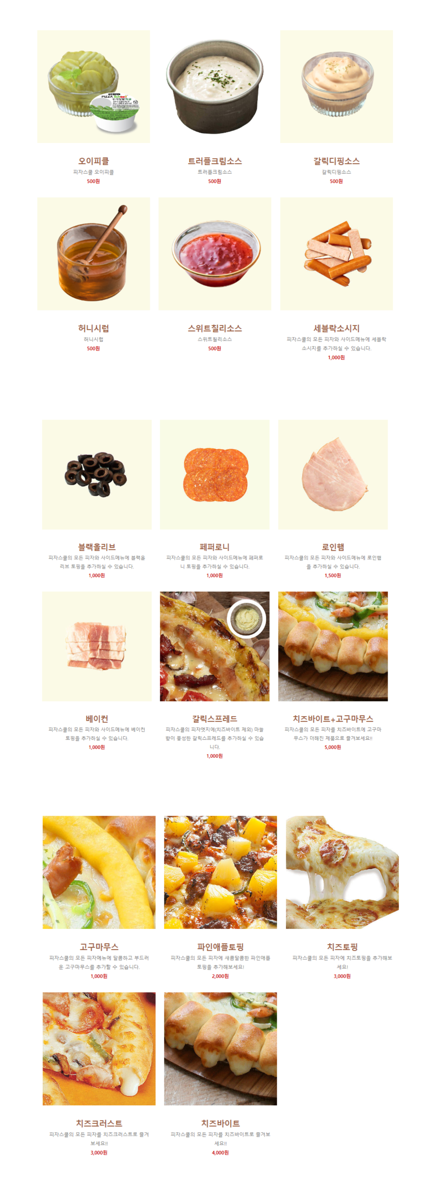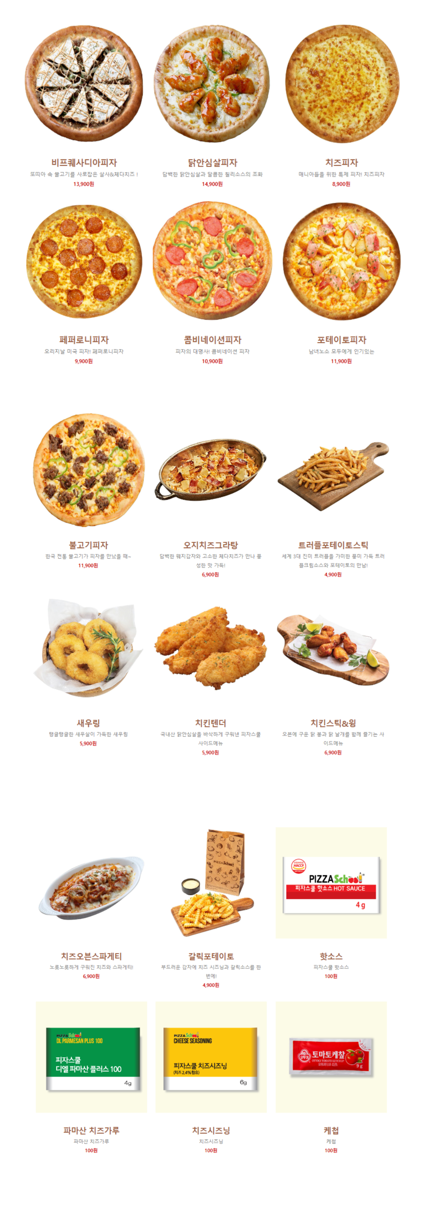 - 치즈피자 8,900원