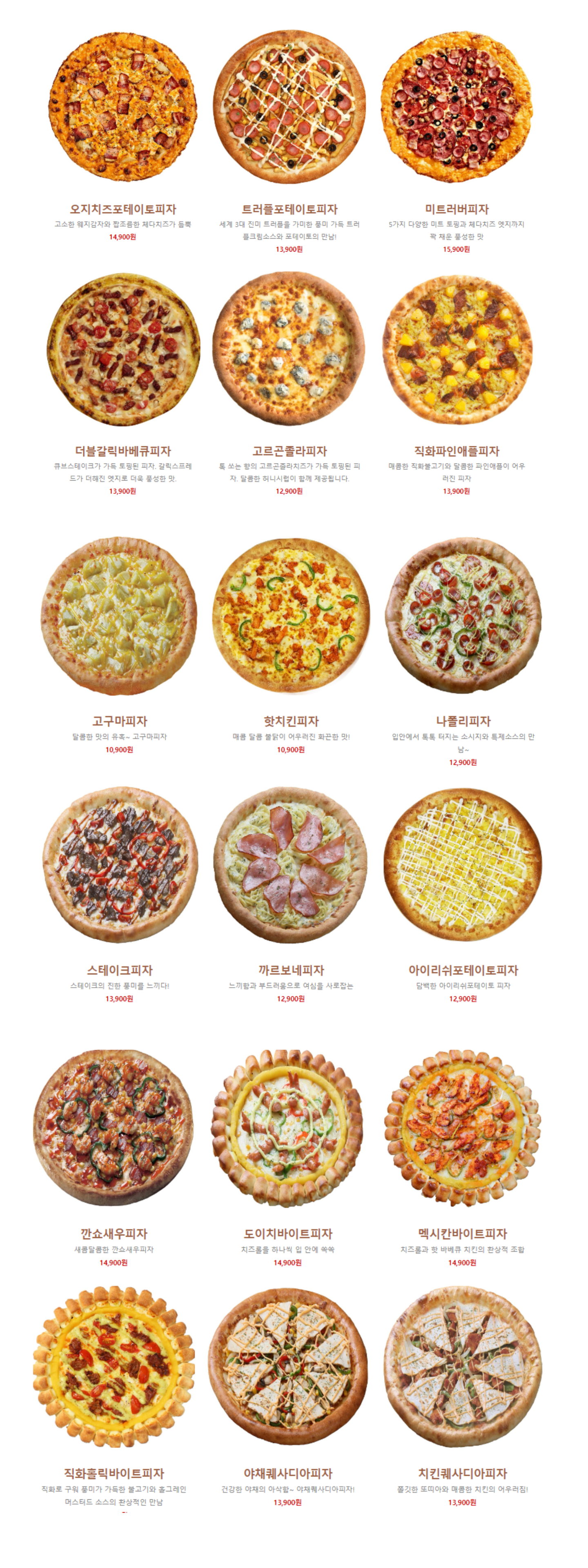 - 직화홀릭바이트피자 14,900원