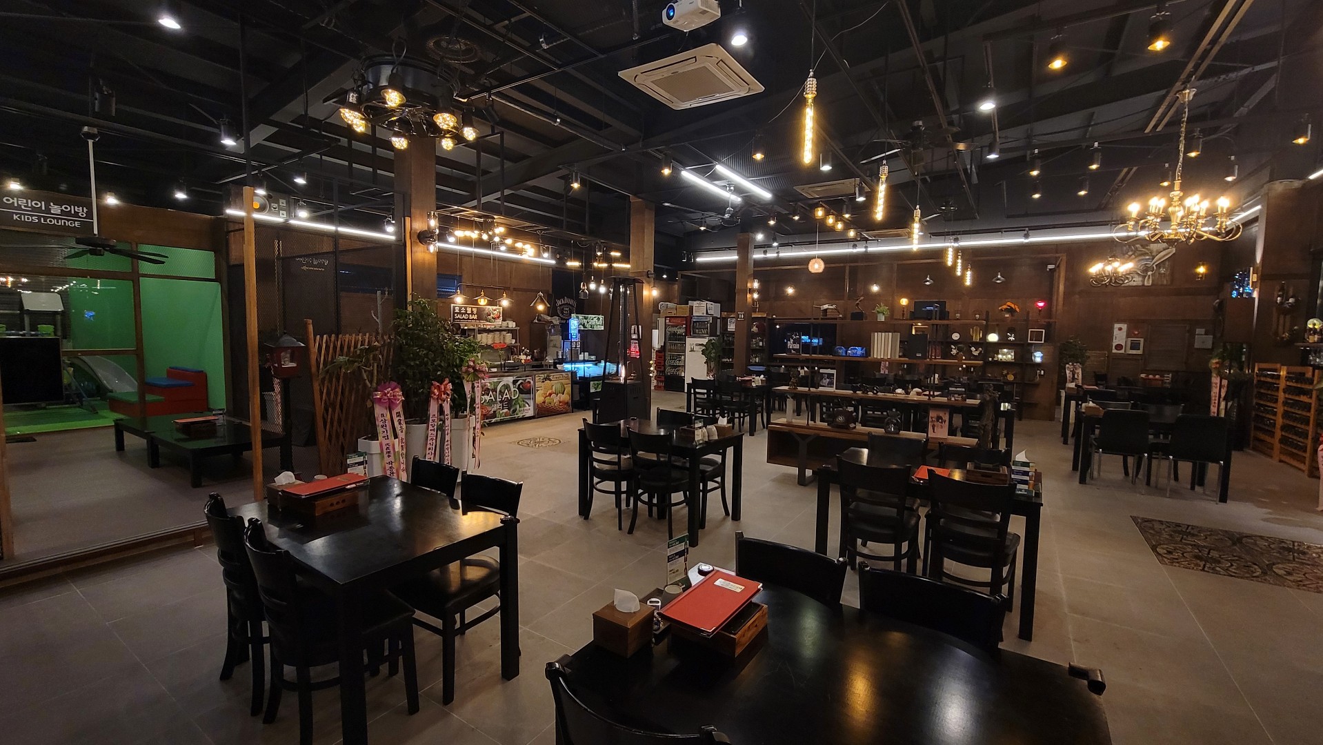 Jason W Kim사장님이 좋아하는것들 다 때려박으신 아지트느낌ㅎ 뭔가 독특하면서 언발란스하면서도 믹스되어있어요 음식은괜찮아요 샐러드바때문에 야채는편히먹을수있어요 컨셉을뭐라해야할지ㅎ 음악카페에서 고기먹는느낌 잘먹고갑니다~~~