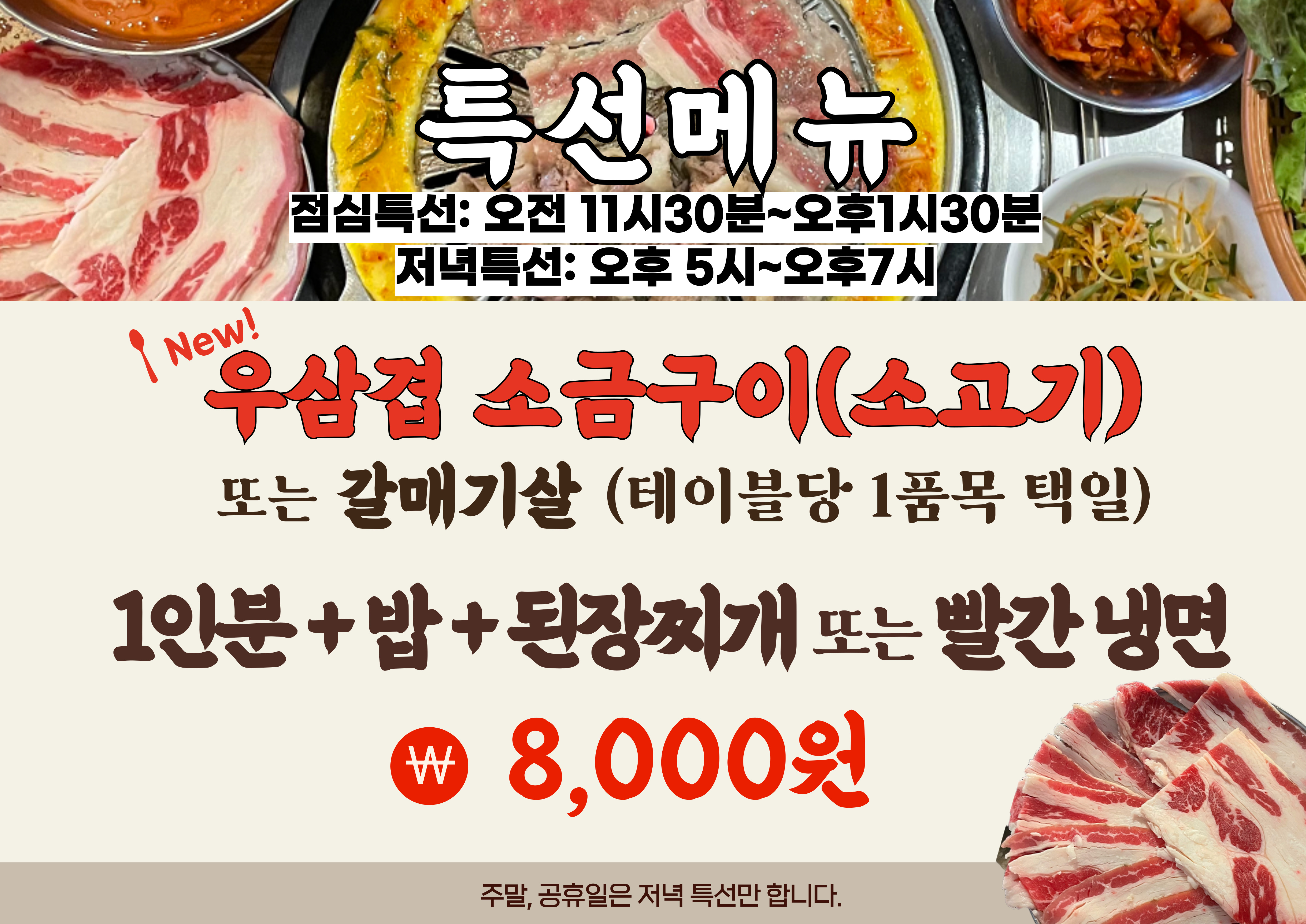 • 우삼겹소금구이(소고기) 9,000원