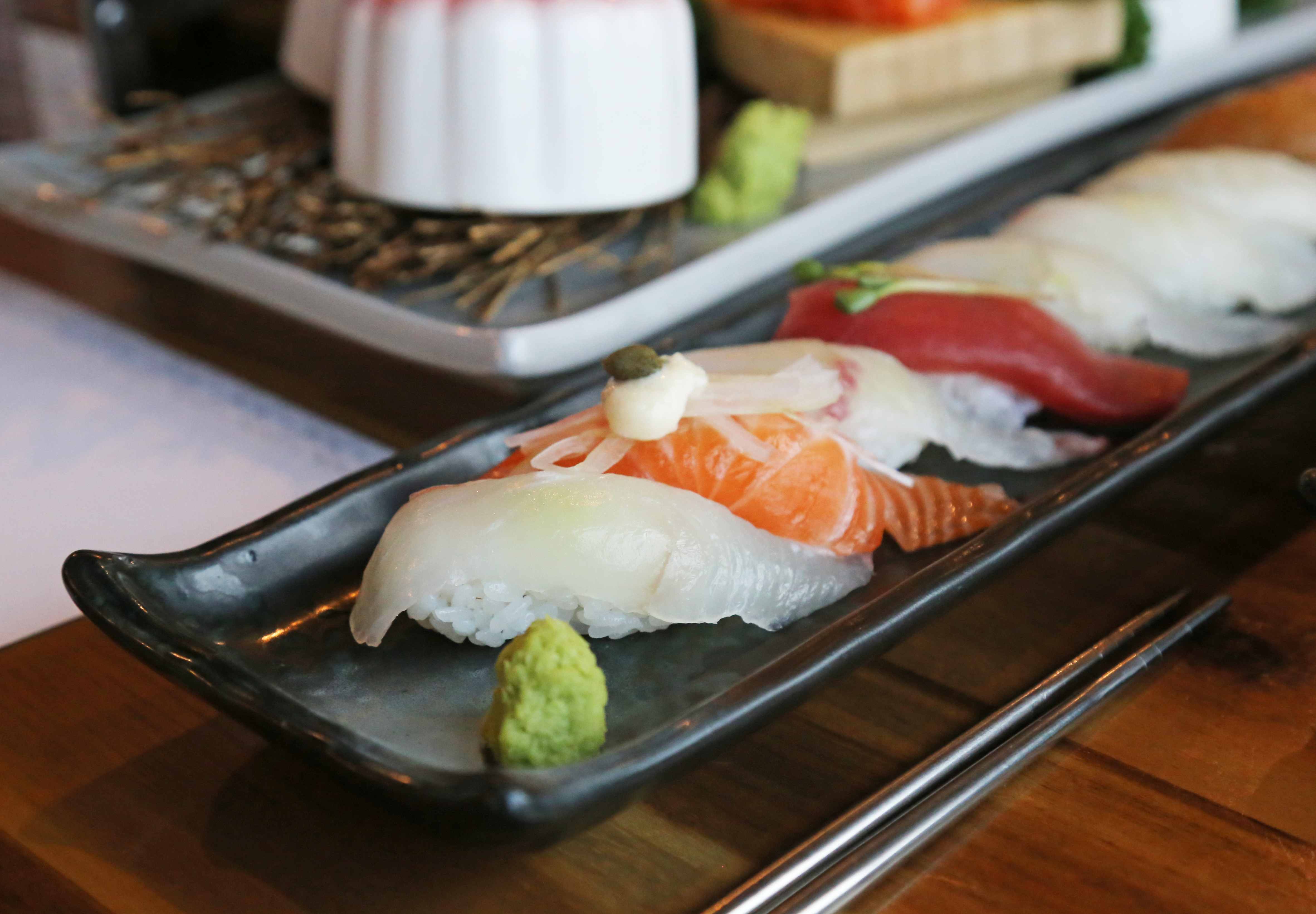 야옹이237연어초밥 커플초밥 특초밥 같이 먹기 좋아요. 한번씩 와사비가 많이 들어간게 있어서 깜짝 놀래요. 코가 뻥 ㅎㅎ 초밥은 먹고나면 좀 짜서 그런가 물이 자꾸 먹고 싶네 밥을 조금 싱겁게 해주면 좋겠네
