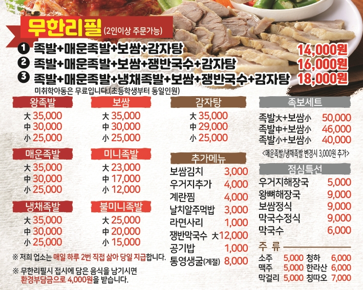 - 무한1:족발,보쌈,매운족발,감자탕 14,000원