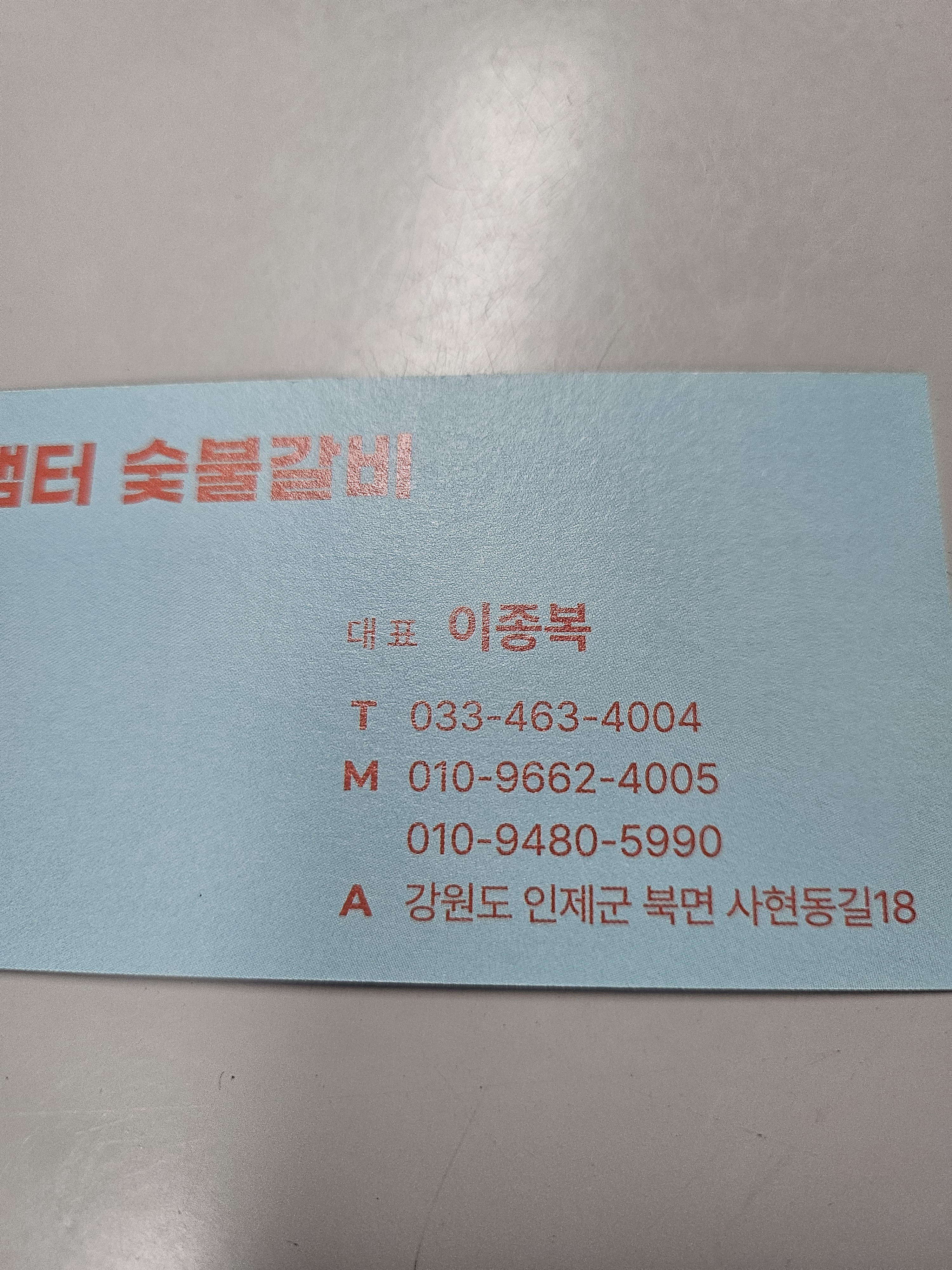 강원 인제군 북면 사현동길 18 샘터숯불갈비