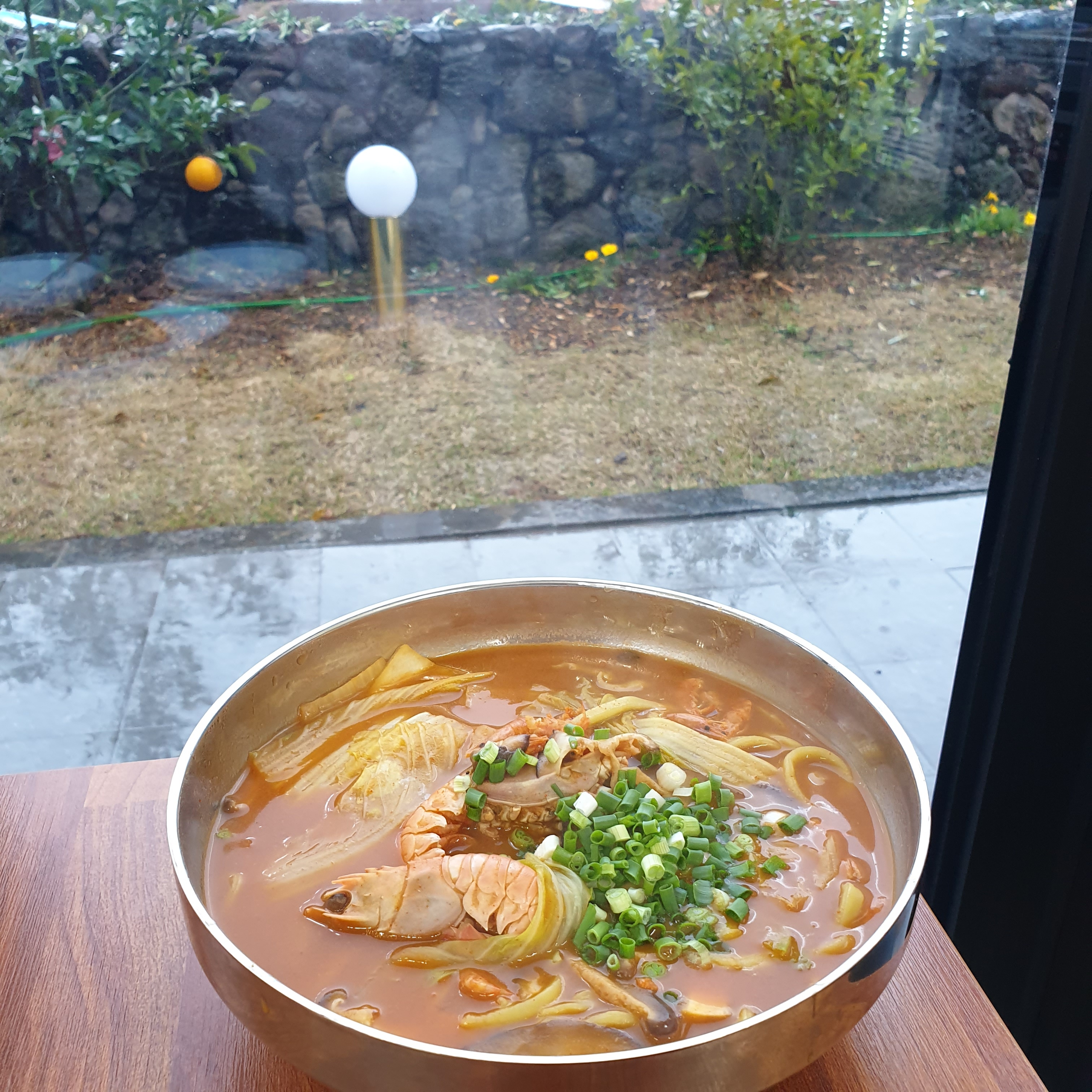 - 얼큰 딱새우 장칼국수 9,000원