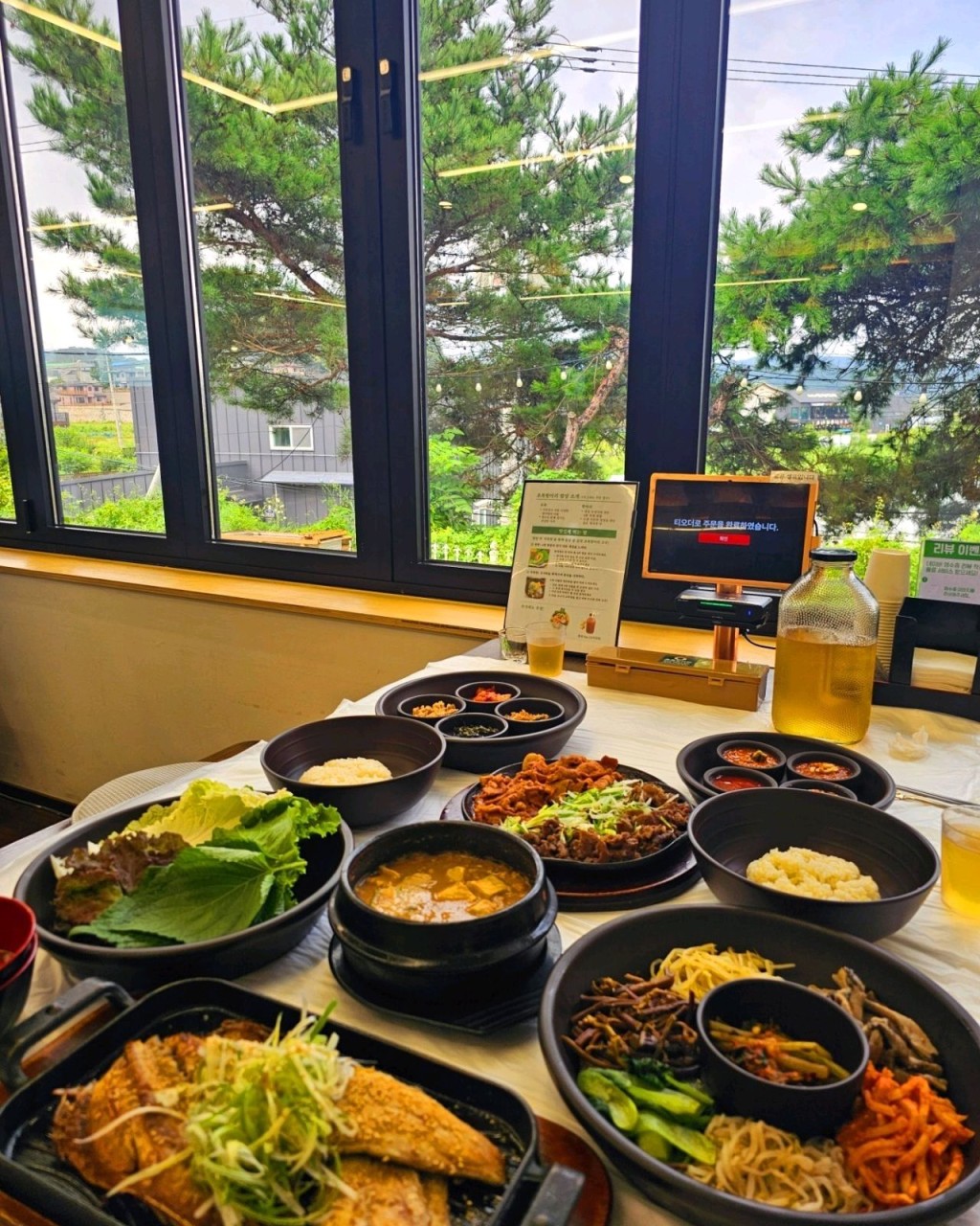 prayerhee강화에 나들이 왔다가 맛집검색해서 왔어요 주문하려는데 미리 나온 밑반찬이 아주 화려하네요! 기대하는 마음으로 먹어봅니다^^ 직접 담근 장으로 만든 청국장, 쌈장 모두 맛있네요 쌈야채도 셀프로 더 가져다 먹을수 있구요 비빔용으로 나온 나물들도 애초에 많이 주셔서 리필하지 않아도 될정도입니다! 생선구이 고등어와 장어구이도 아이들까지도 잘 먹었어요^^