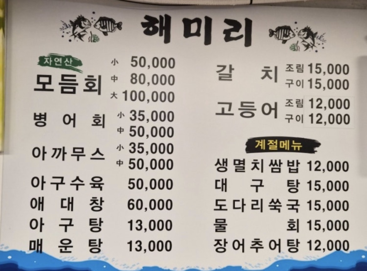 - 자연산 모듬회(소) 50,000원