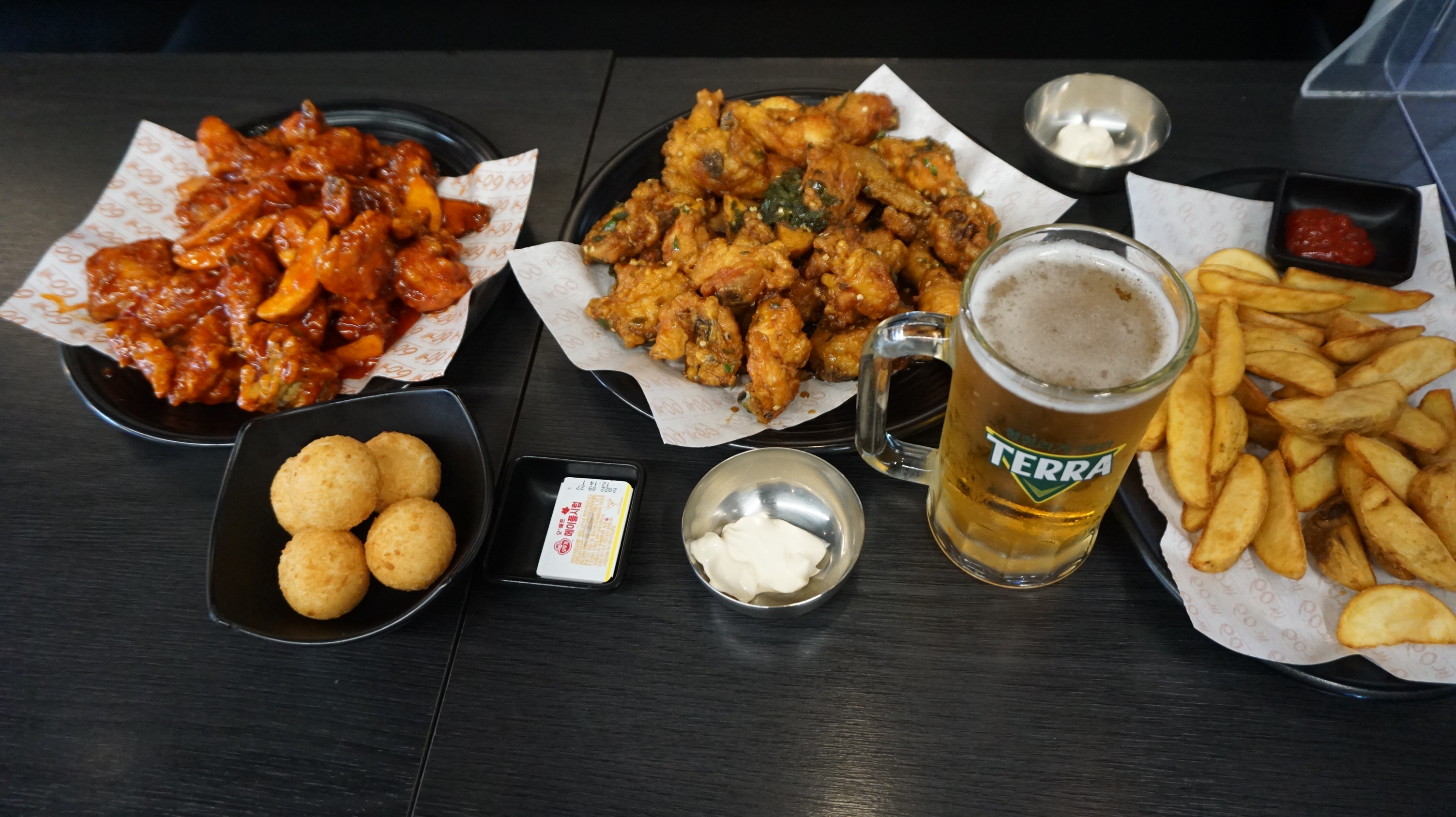 리뷰KING호랑이 치킨 엄지척! 크리스피하면서 매콤함이 살짝 가미된 질리지 않는 마법의 치킨. 순살로 시켰는데 퍽퍽하지도 않고 촉촉함을 그대로 살려서 아주 잘 튀겨서 나오네요. 같이 먹기좋은 사이드는 치즈 쭉쭉늘어나는 치즈볼도 좋고요, 떡볶이도 좋습니다. 떡볶이는 살짝 더 매콤하고 어묵보다는 떡이 주로 많아요. 확실히 매장에서 먹으니 더 맛있고요, 명지대점 홀도 깔끔하고 친절해서 더더 좋습니다~