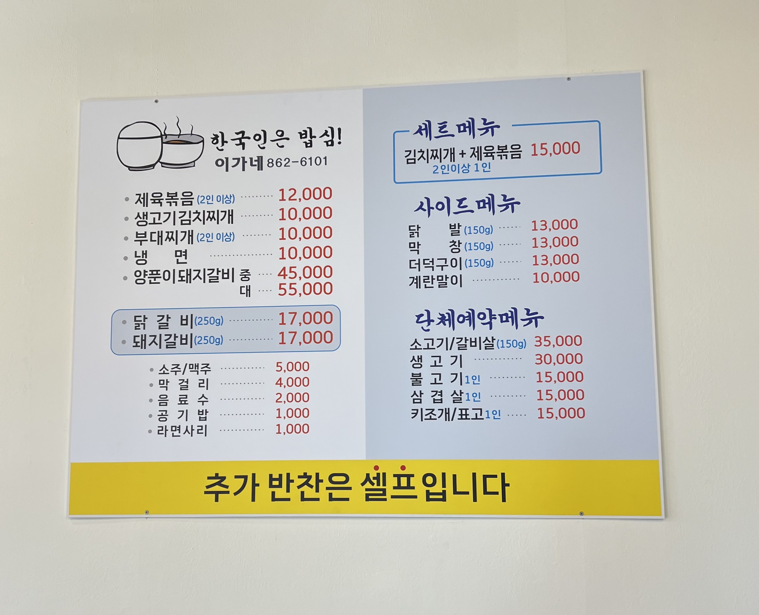 - 생고기김치찌개 10,000원