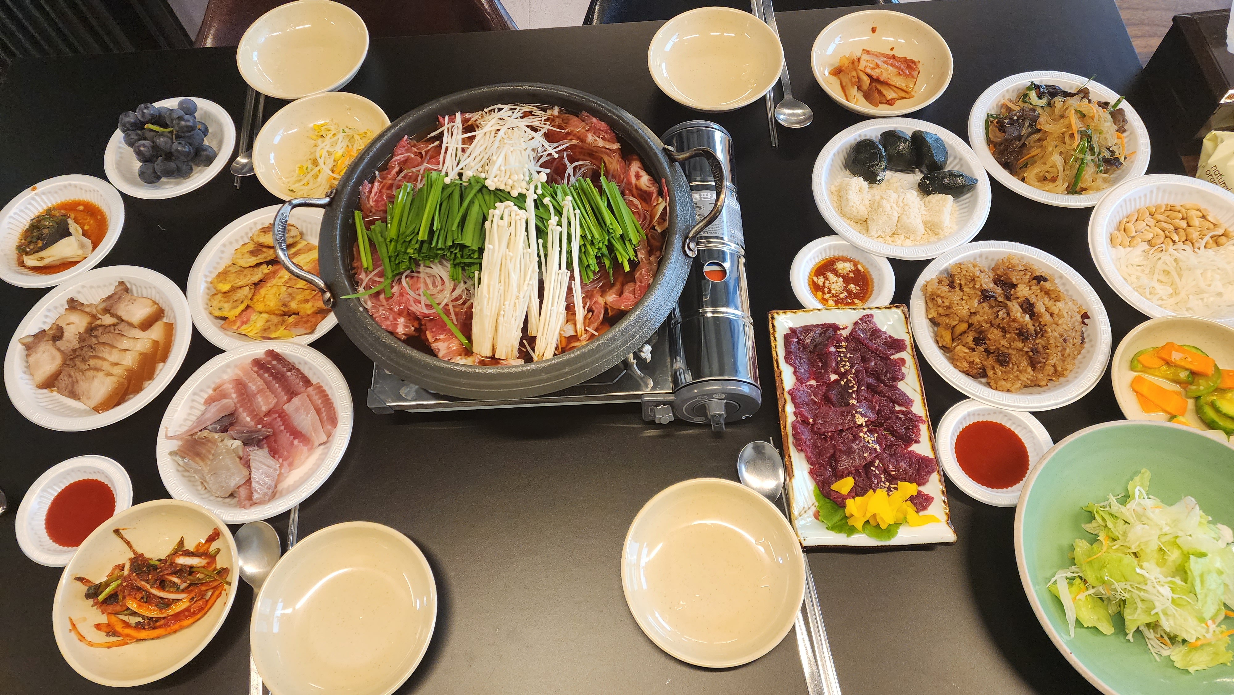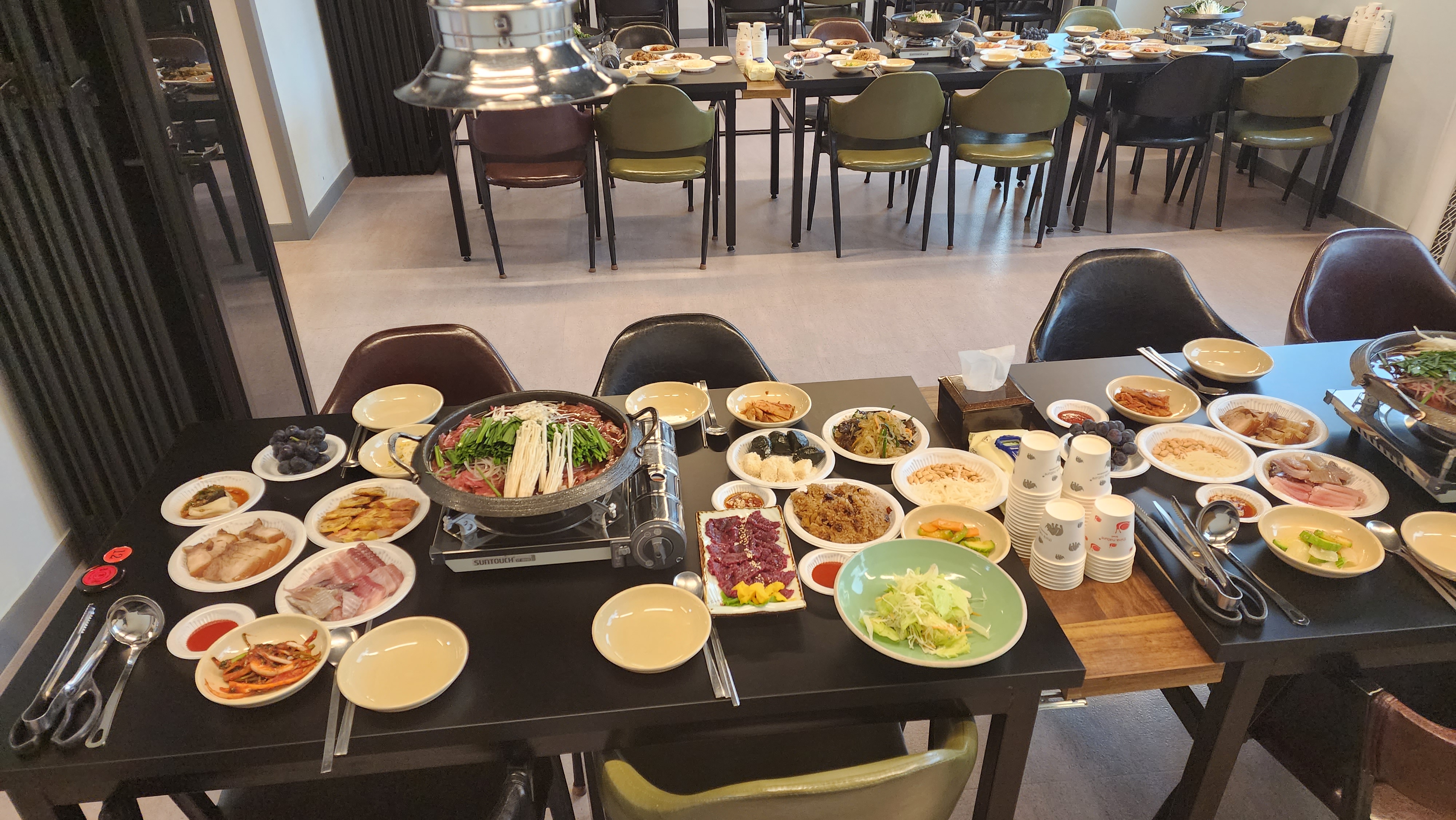 핑크할멈꼬마전복이 들어있고 현지인이 많아요 맛도 좋아요. 가격은 살짝 비싼너낌 ~