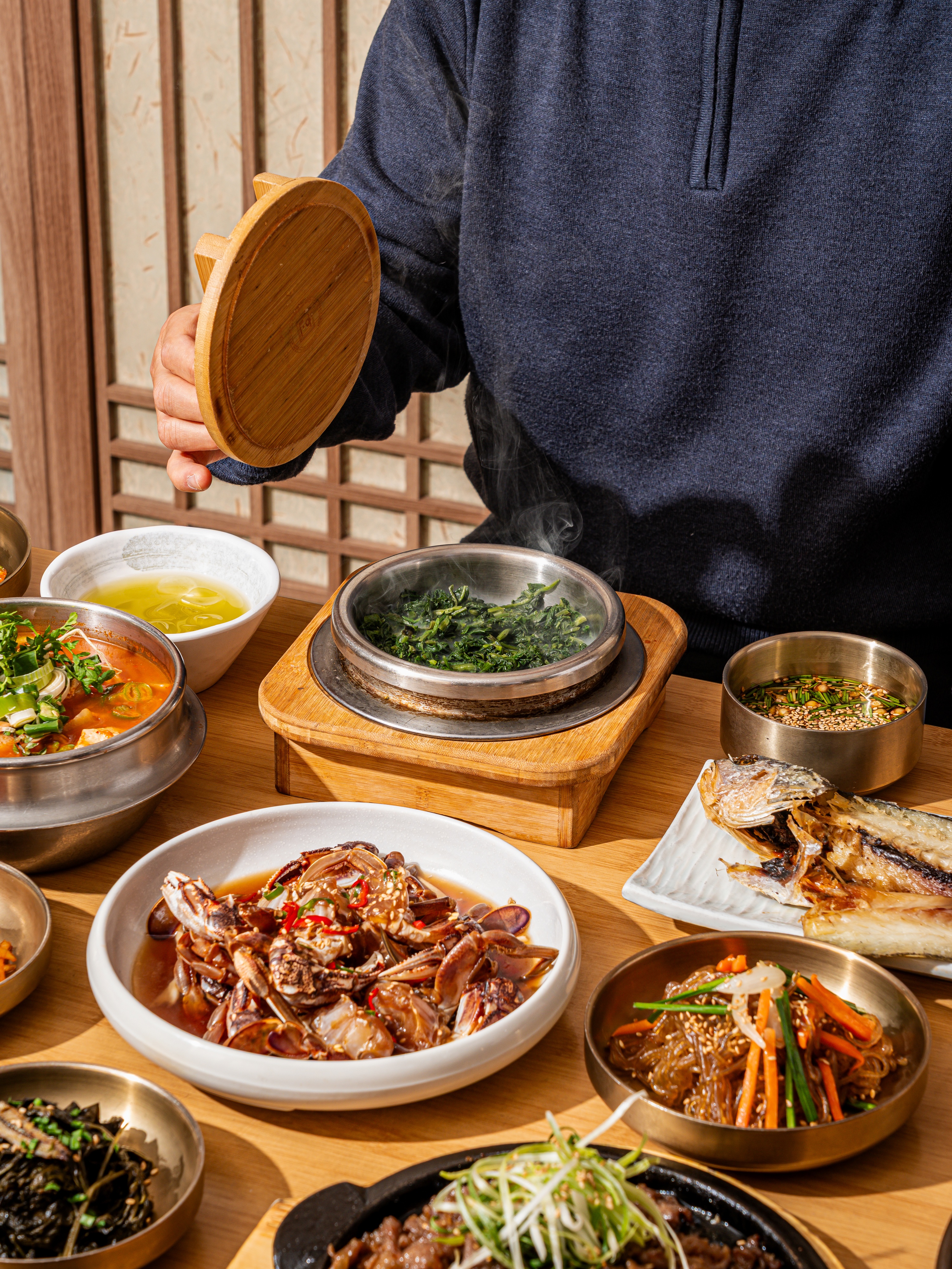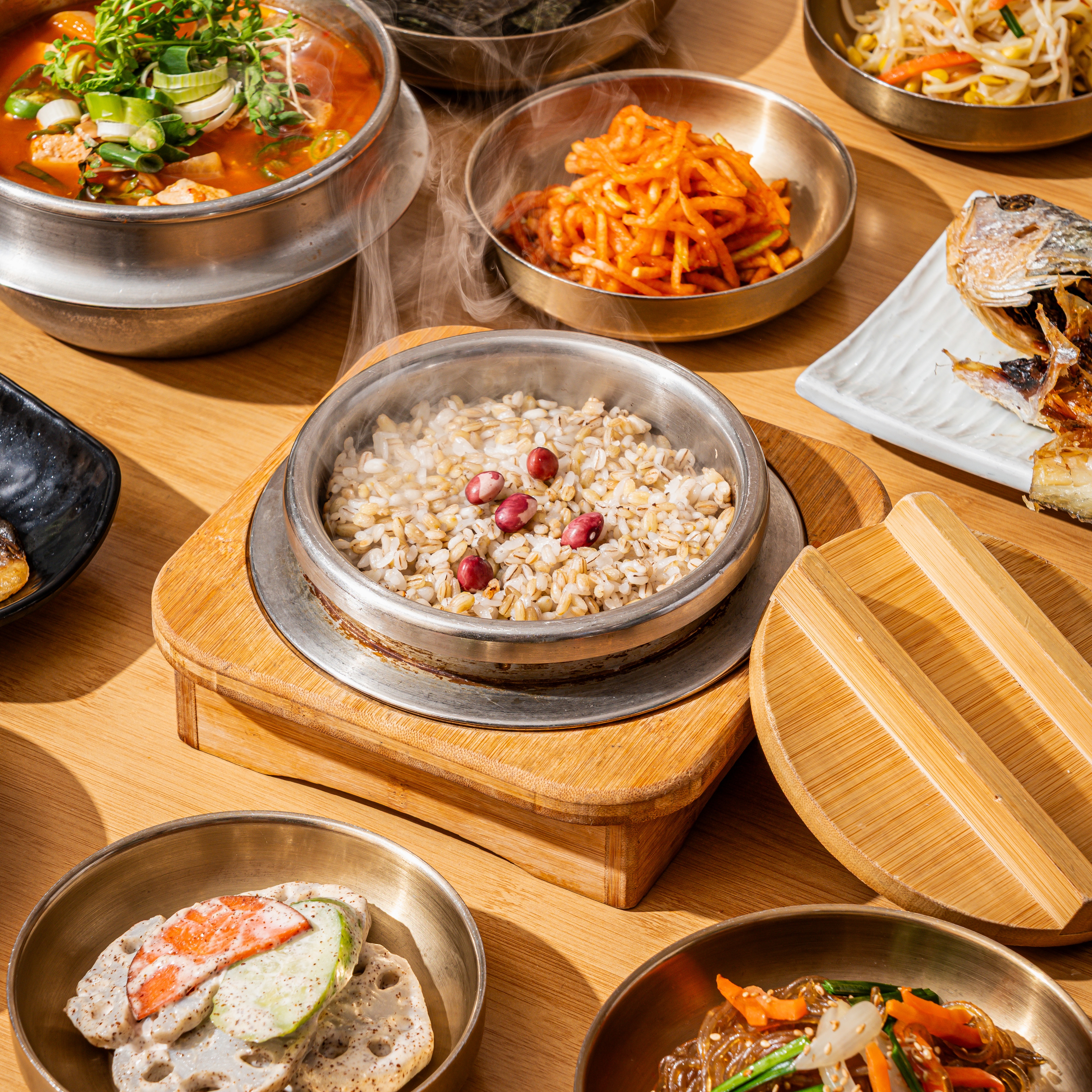 삼산동 보릿골 정찬 예약후 방문했어요 보릿골 솥밥정식3개 곤드레 솥밥정식1개 쌀 솥밥 청국장정식1개 맛보쌈1개 주문완 12시30분 예약시간이라 손님이 정말 많았고 웨이팅 도 있고 주차자리도 많이 부족하더라구요 그래서 일부 는 근처 공영주차장 으로 갔어요 모임이나 약속 있으신 분 들은 미리 예약 하시는걸 추천 드려요 봄이라 그런지 봄동 겉절이 있었는데 너무 맛있어서 고추장 참기름 넣고 슥슥 비벼먹기도 했어요 요즘 봄동 비빔밥 유행 이잖아요 밑반찬 종류도 다 맛있고 깔끔하고 셀프코너 있어서 부담없이 가져다 먹을수 있어서 좋아요 가까운 곳에 이런 식당 있는거 너무 행운이에요!!ㅋㅋ 친절 맛 서비스 부족함 없는 식사해서 다 만족한 점심 맛있게 잘먹었습니다👎🫶🙏