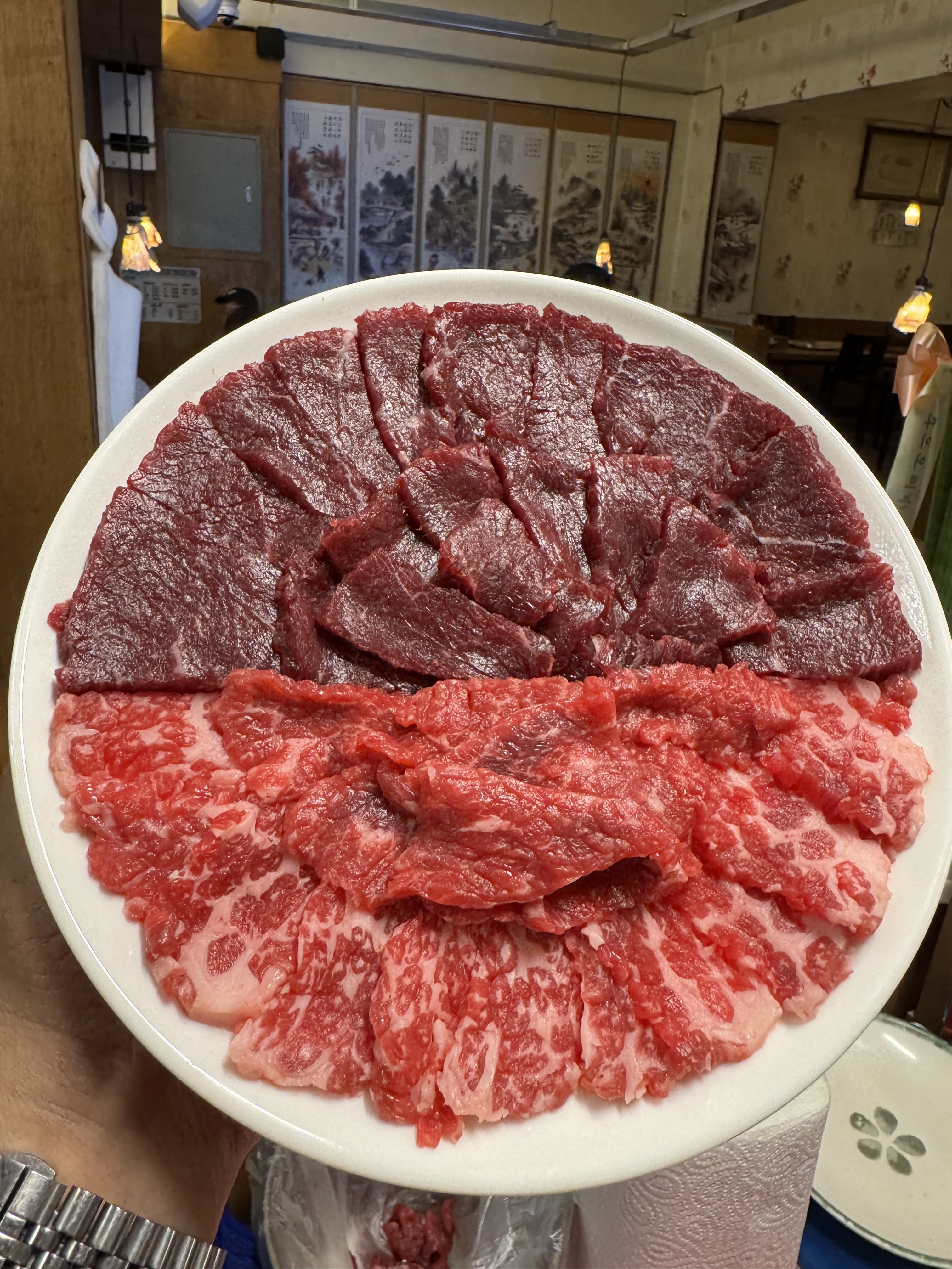 - 뭉티기, 생차돌 반반(중) 58,000원