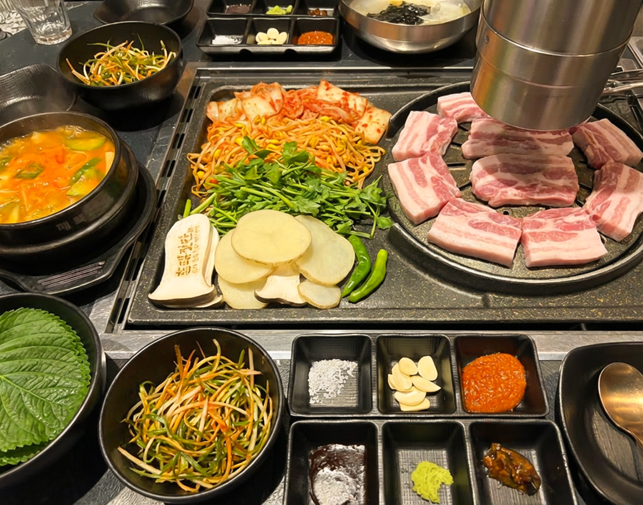 noo****부모님 모시고 방문했어요. 김치와 미나리. 콩나물 구워먹는 것도 좋아하시고 고기도 너무 맛있었어요. 고기에서 왜 잘 숙성된 햄맛이 나는 걸까요?^^ 김치도 고기와 너무 잘 어울리구요. 맛있게 잘 먹고 갑니다.