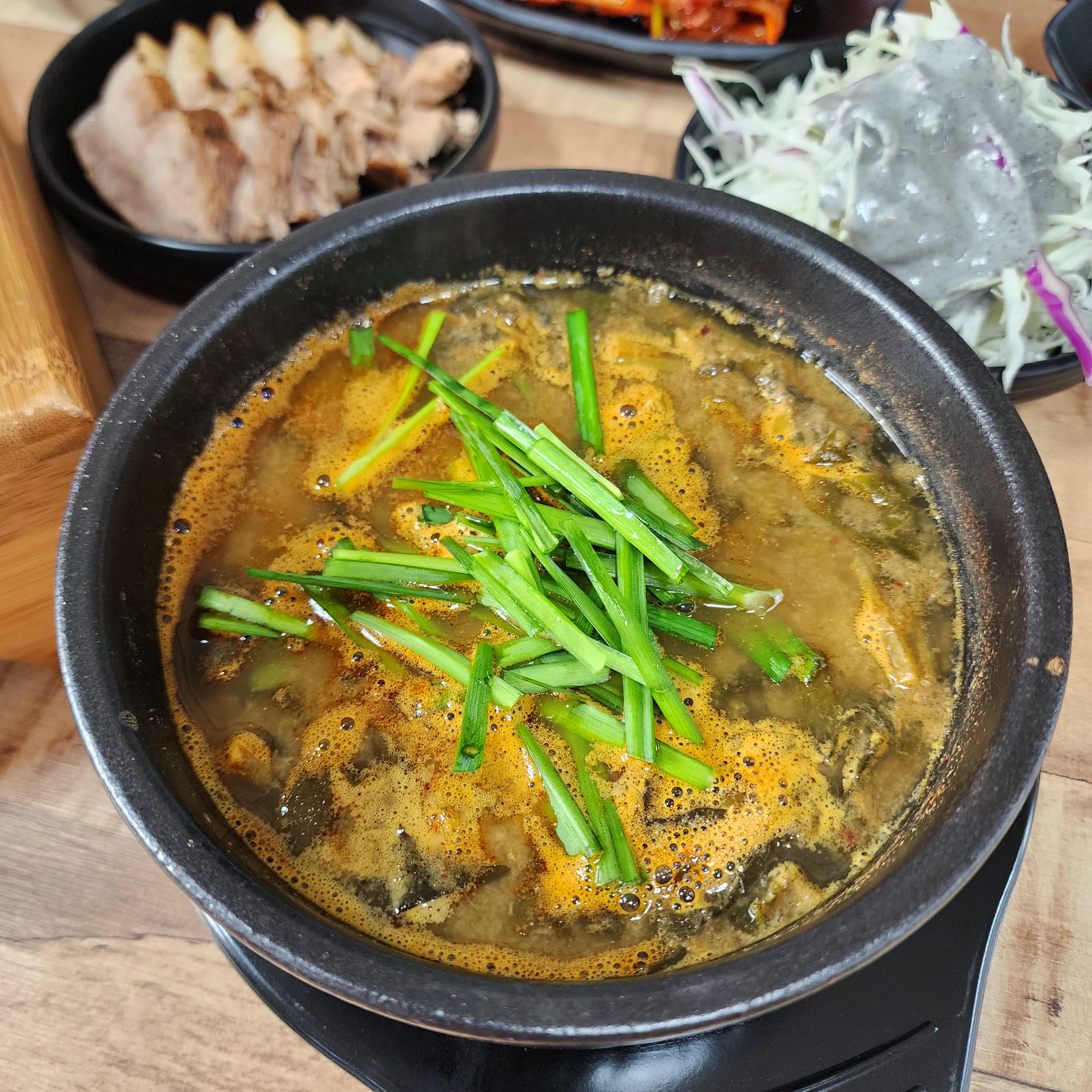 스위밍1몸에 좋은 시래기가 아주 뜸뿍-! 먼저 국물부터 먹어봤는데 경옥고를 넣어 120시간 중탕했다는 말이 괜히 나온 게 아니라, 국물이 정말 묵직하고 진해요. 추어탕 특유의 구수함에 한약재의 은은한 향이 더해져서, 쓴맛 없이 부드럽고 고급스러운 맛이 인상적이었어요.🤎 완주 용진맛집인 경옥고추어탕 추천추천드립니다!!!