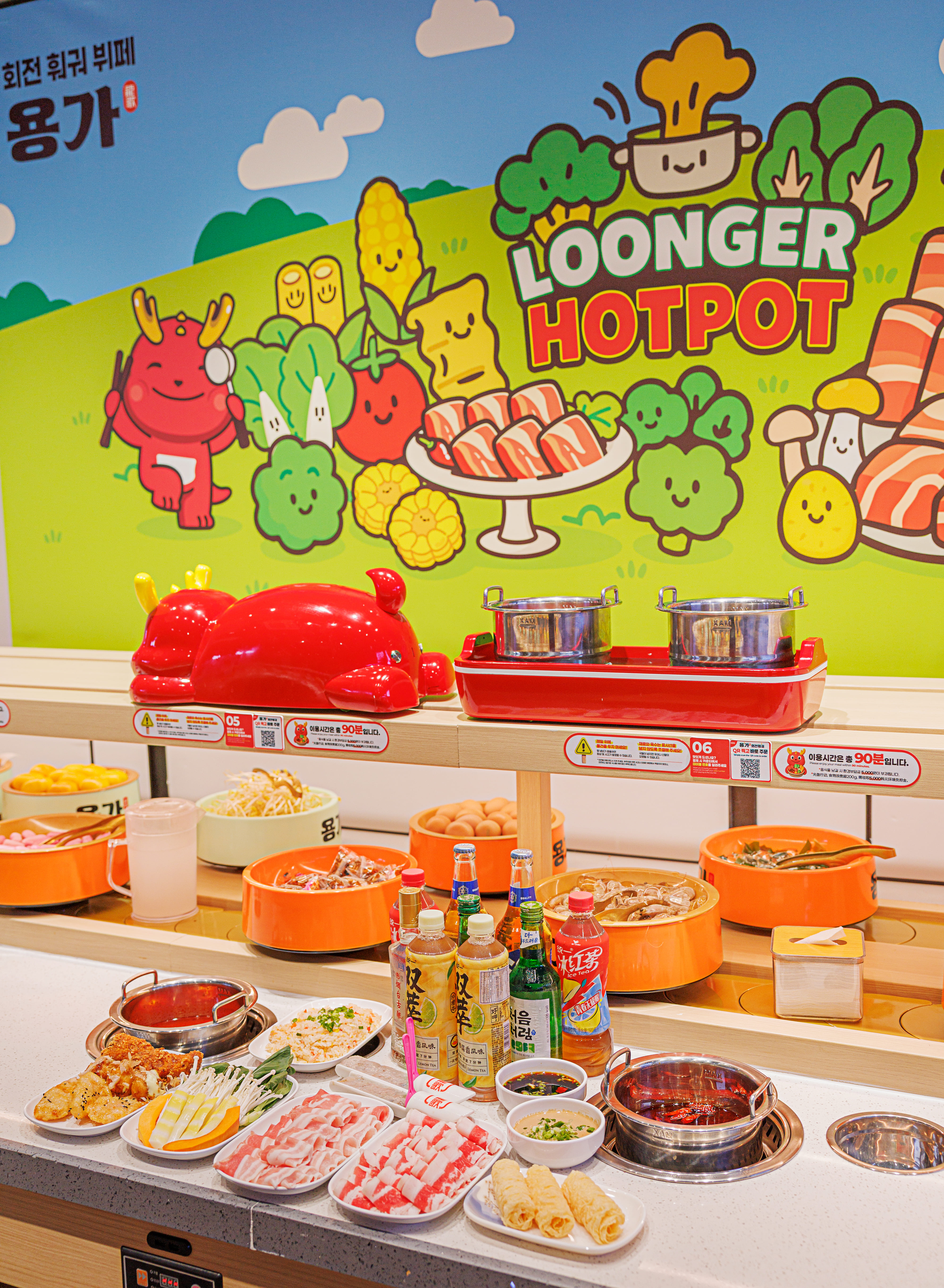 yeridream77평일 오후 네시반쯤 가서 금방 입장했어요 앉은 자리에서 큐알로 탕을 주문하면 빨간 용 기차가 탕을 자리까지 갖다줘요 꿔바로우랑 자잘한 치킨튀김?같은거 있고 그전엔 마파두부인가가 있었는데 그게 마라샹궈로 바꼈어요 훨씬 더 좋아요 너무 맛있었어요 소스바도 깨끗하고 매장도 넓고 음료도 맘껏 먹을수 있고 마지막에 아이스크림에 땅콩까지 뿌려먹으면 배터져요 혼자가서 먹기도 넘 좋아요 추천합니다