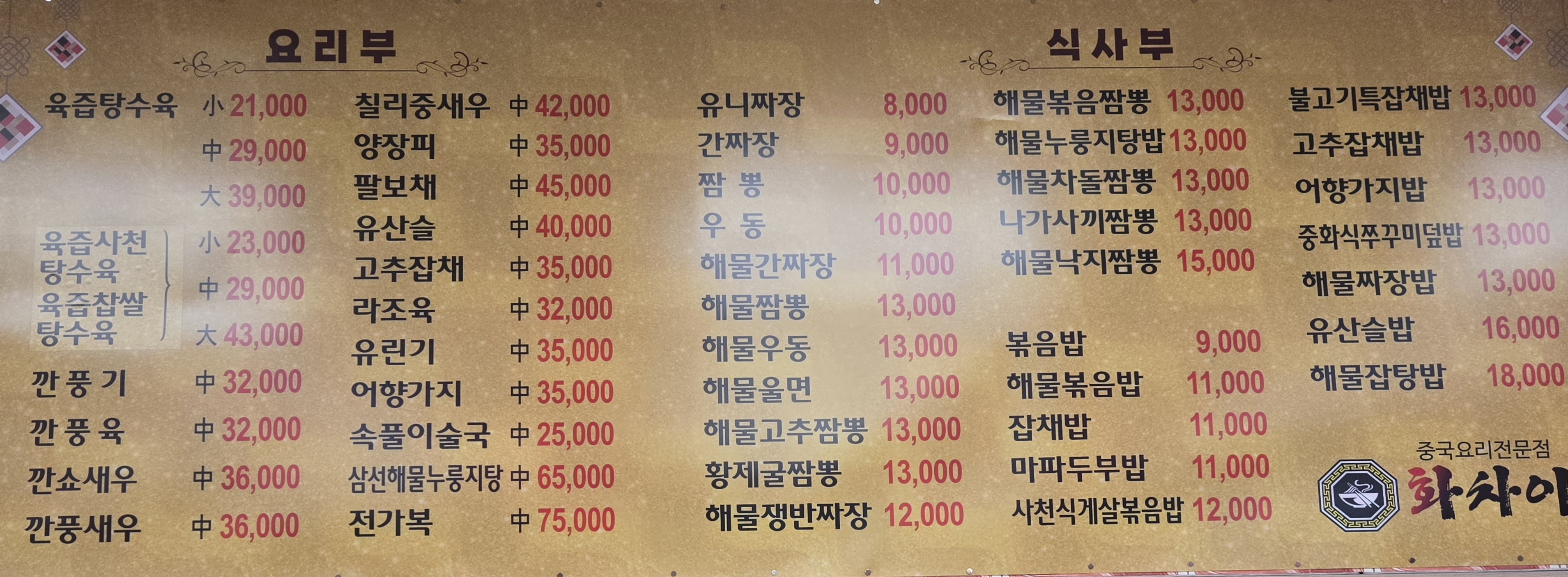 - 해물쟁반짜장 12,000원