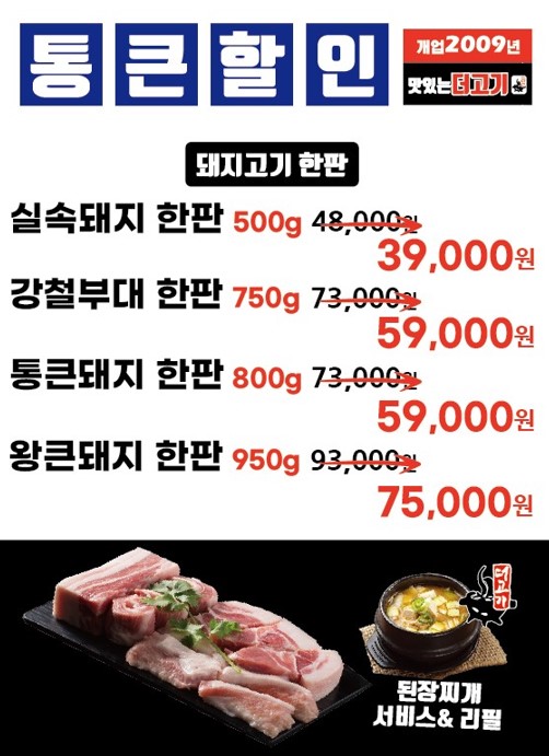 - 통큰돼지한판 800g 3인 59,000원