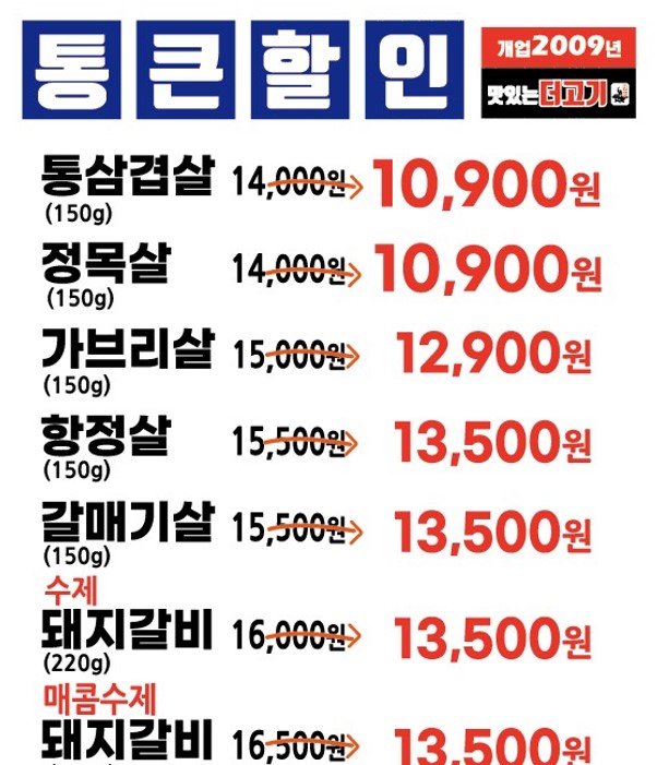 - [특판]무한리필[삼겹+목살+돼지갈비) 16,500원