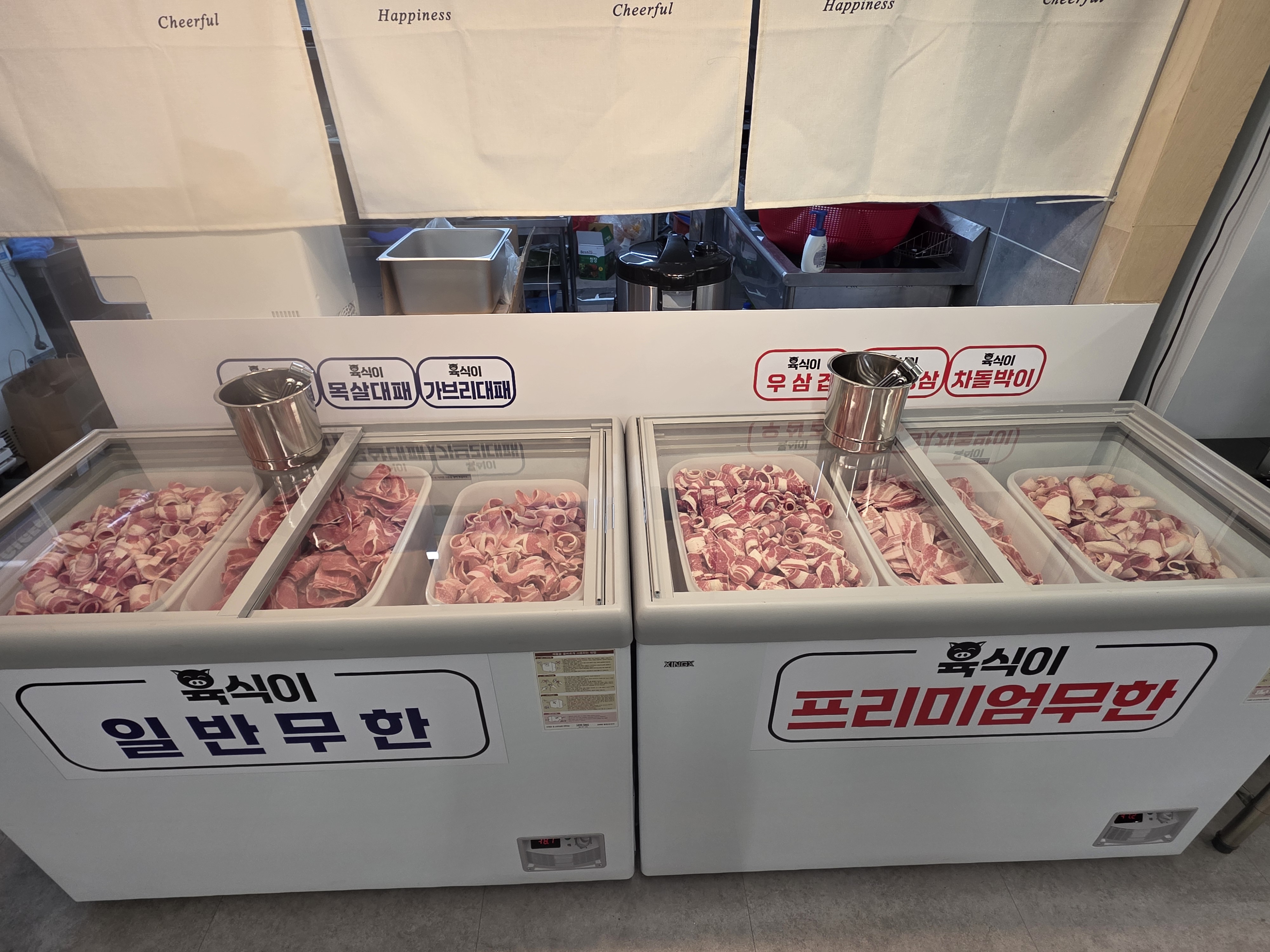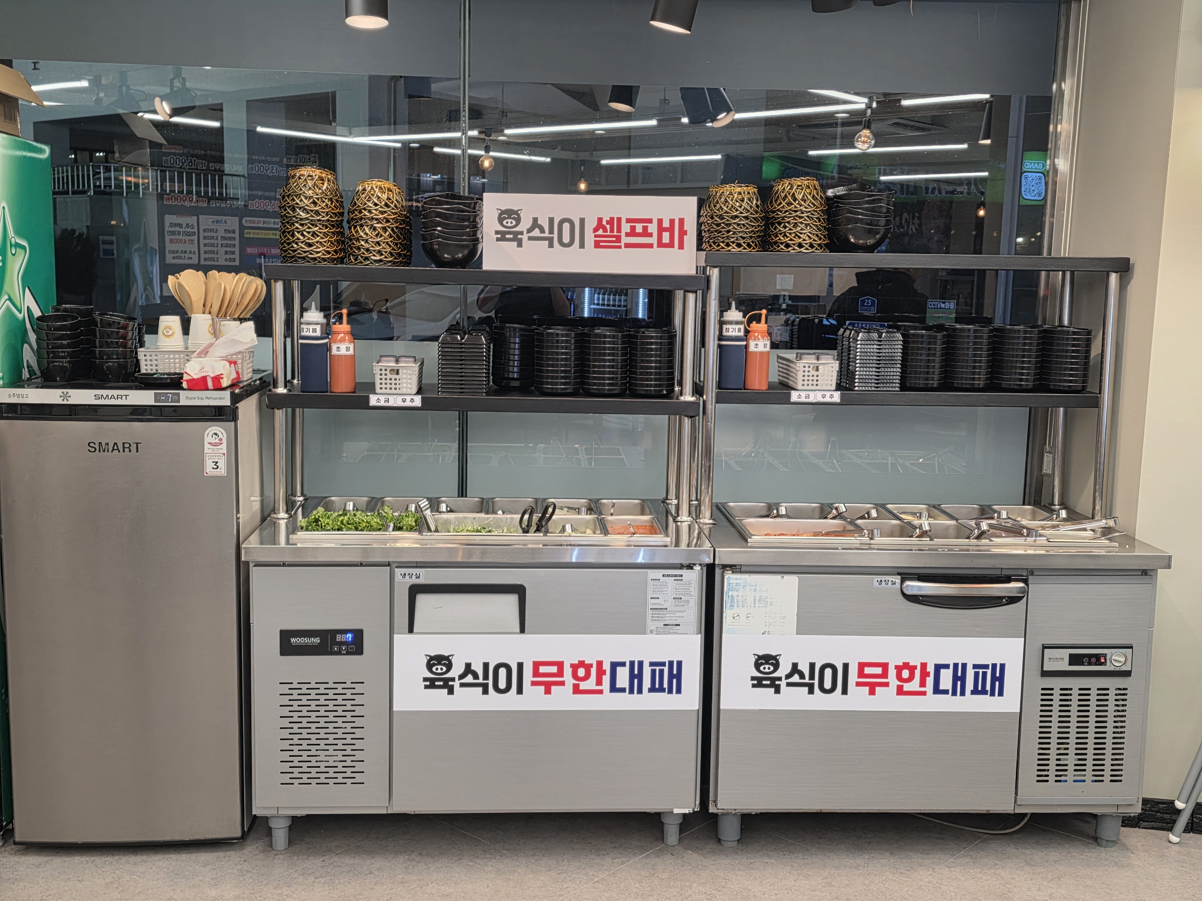 폭주천사95셀프로 고기를 가져다 먹을수있고 다양한 야채와 보기드문 염통 아이가 좋아하는 소세지만두 떡까지 어른아이할꺼없이 저렴하게 배불리 먹을수있는곳입니다 느끼할땐 라면과 같이 먹으면 꿀맛입니다