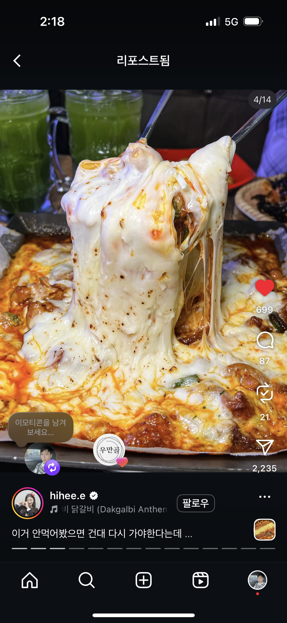 MJ3333불금에 딱 어울리는 메뉴 찾는다면 여기입니다🔥 숙주 가득 올라간 철판에 고기와 채소를 같이 익혀 먹는 차돌숙주볶음도 식감이 좋아서 계속 손이 가더라고요. 거기에 육회비빔면까지 같이 먹으니 조합이 완전 미쳤습니다. 🍜🥩 하지만 이날의 진짜 주인공은 치즈 회오리 닭갈비였어요. 🧀🐔 매콤한 닭갈비 위에 치즈가 듬뿍 올라가서 철판에서 지글지글 녹는데, 치즈가 쭉 늘어나면서 닭갈비랑 같이 먹으면 진짜 환상적인 맛입니다. 매콤함을 치즈가 부드럽게 잡아줘서 계속 먹게 되는 메뉴였어요. 맥주 한잔 곁들이면 불금 분위기 제대로 나고 🍺 친구들이랑 와서 먹기 딱 좋은 메뉴 조합입니다. 치즈 회오리 닭갈비는 꼭 드셔보세요. 한 번 먹으면 또 생각나는 맛입니다. 😋🔥