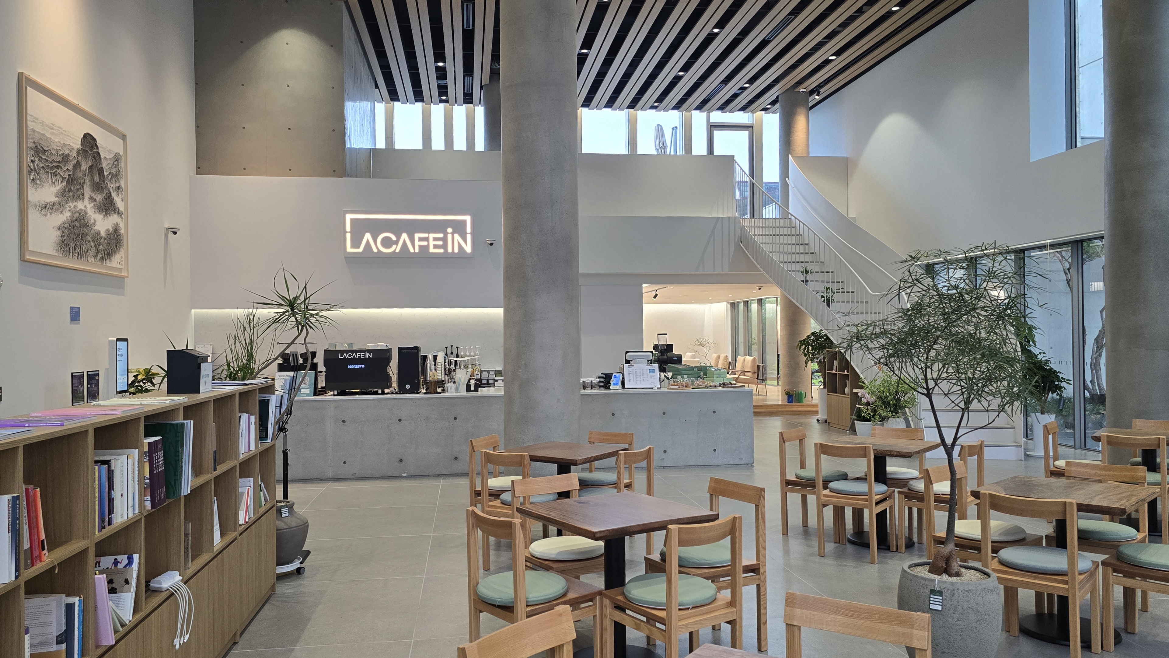 라라로그7천장이 높게 탁 트인 공간에 우드톤 인테리어가 어우러져 들어서는 순간 마음이 먼저 편안해지는 곳, 보은 라카페인카페. 통유리창으로 들어오는 자연광과 별 모양 조명이 은은하게 반짝여 분위기가 참 따뜻해요. 2층까지 이어진 책장 덕분에 마치 작은 도서관에 온 듯한 느낌도 들어요. 소금빵은 겉은 바삭하고 속은 촉촉해 커피와 찰떡궁합이고, 아메리카노도 깔끔하고 산뜻한 맛이라 부담 없이 즐기기 좋아요. 넓은 테이블과 좌석 덕분에 모임 장소로도, 혼자 여유 즐기기에도 딱 좋은 공간입니다. 보은에서 조용히 머물고 싶을 때 다시 찾고 싶은 카페예요. ☕📚✨